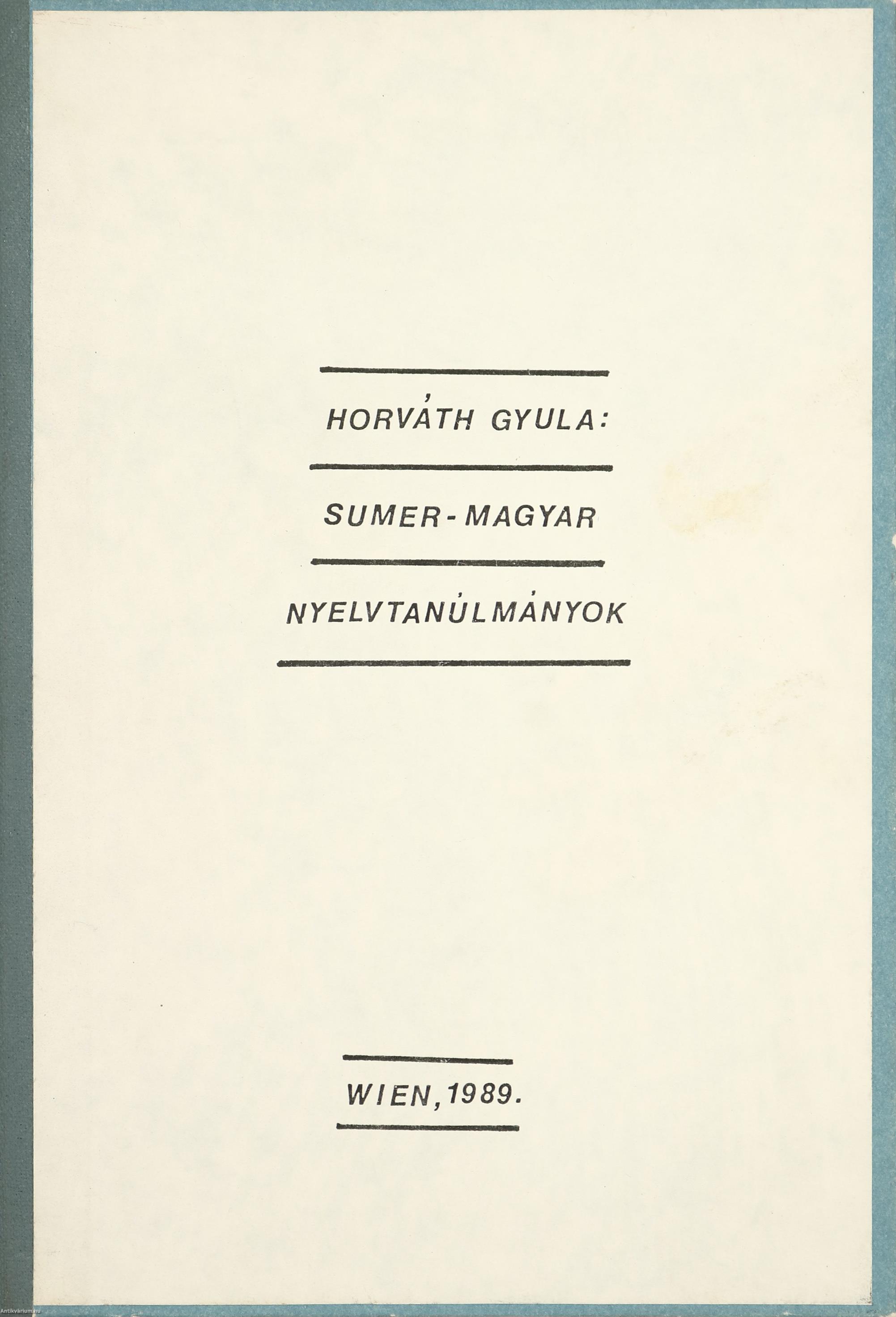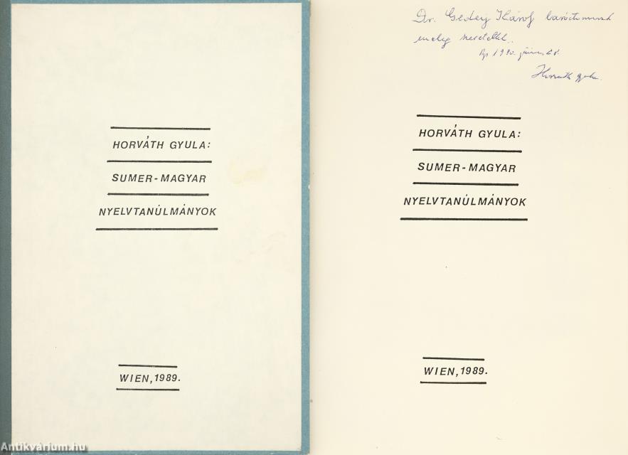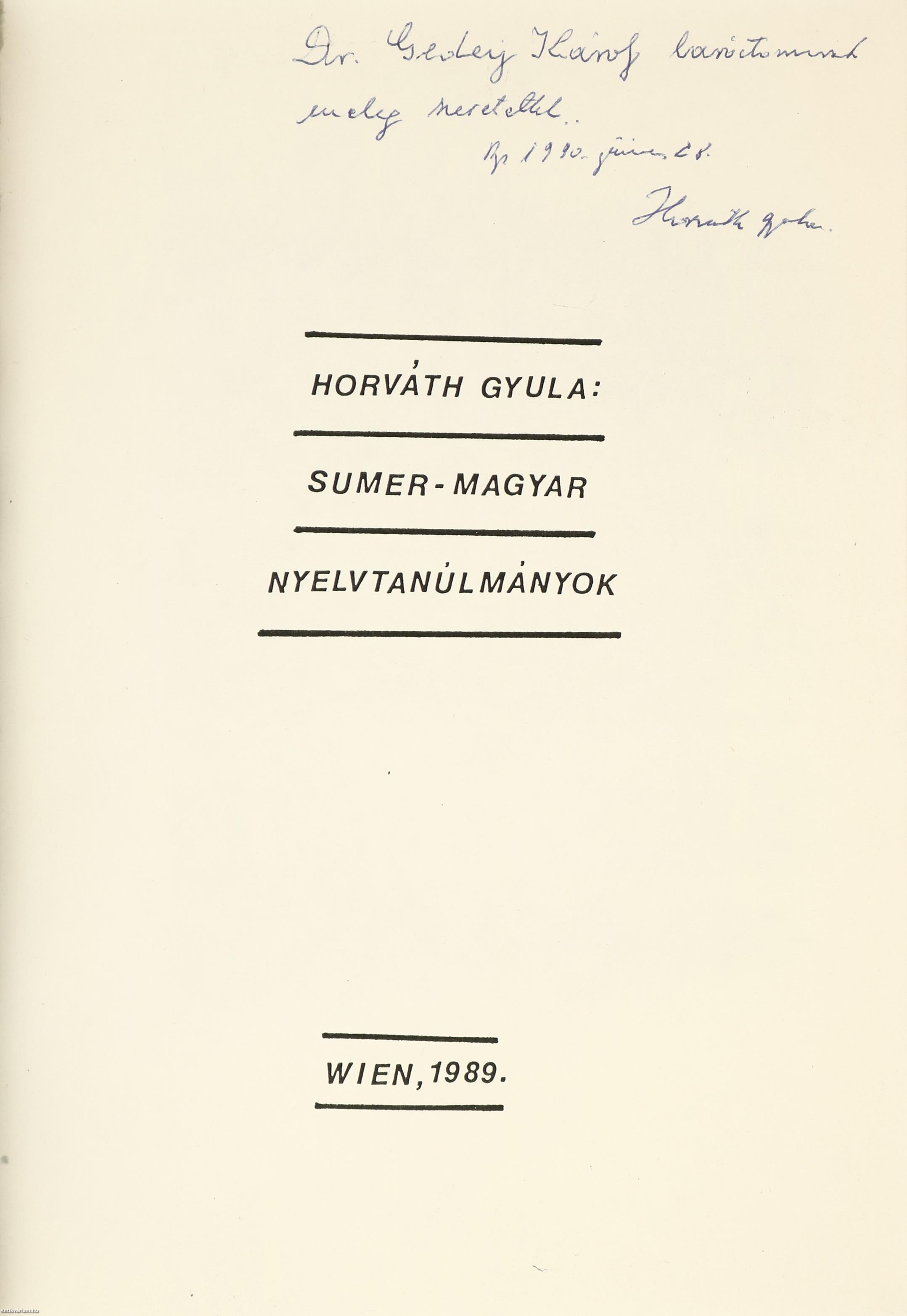 Horváth Gyula: Sumer-Magyar nyelvtanúlmányok (dedikált példány)