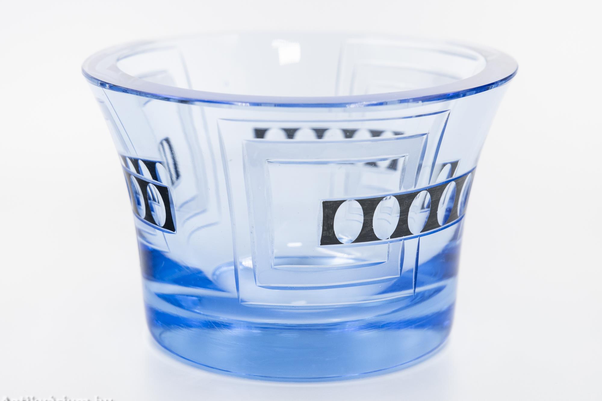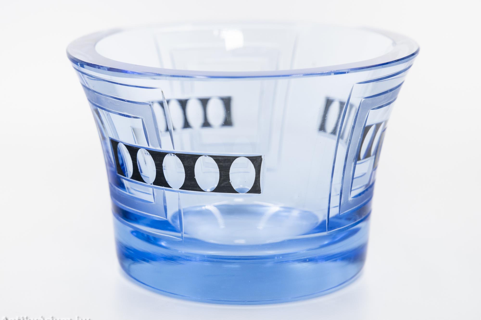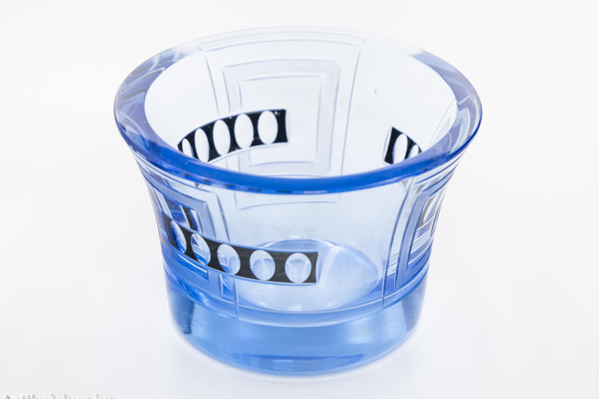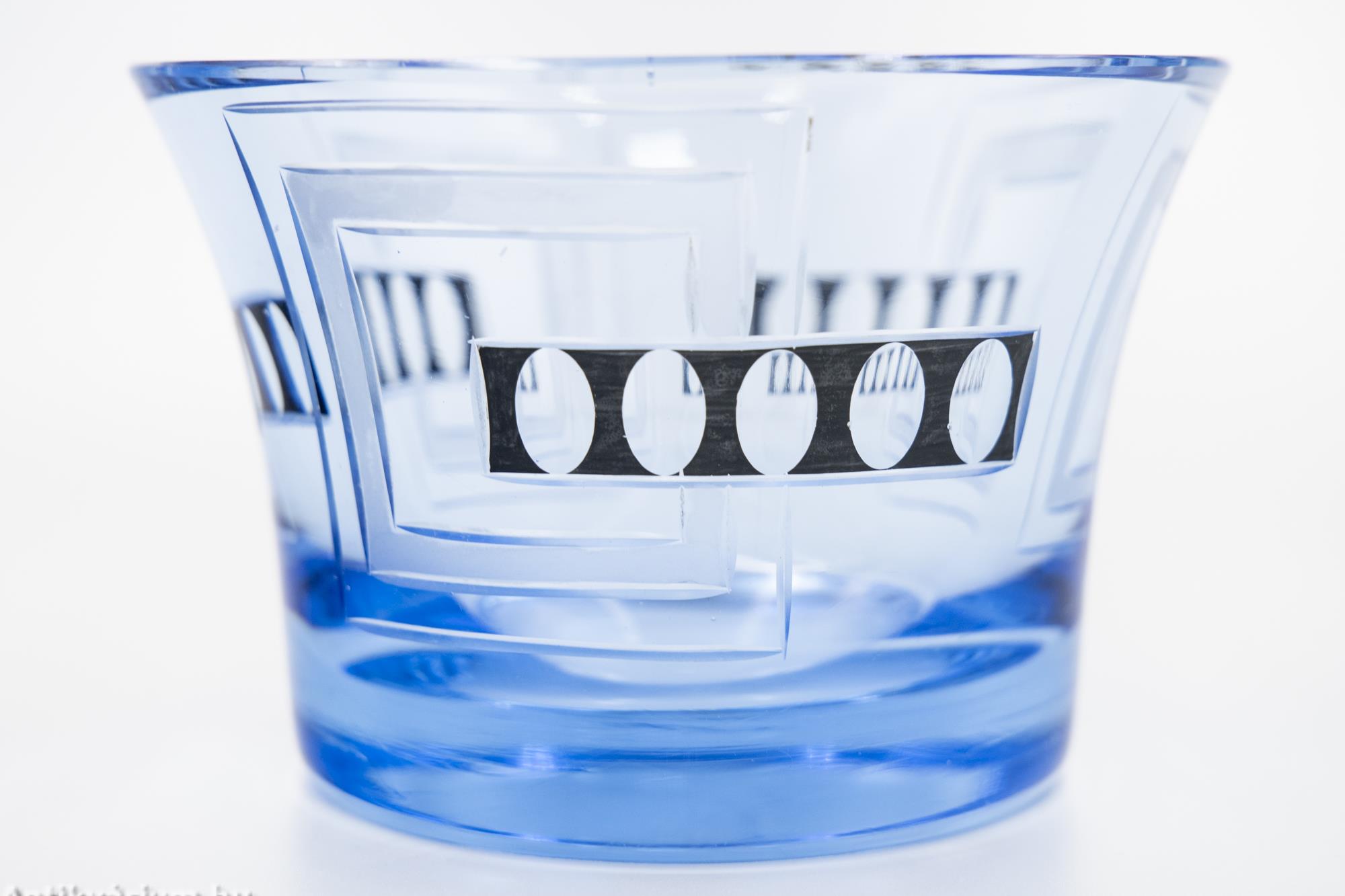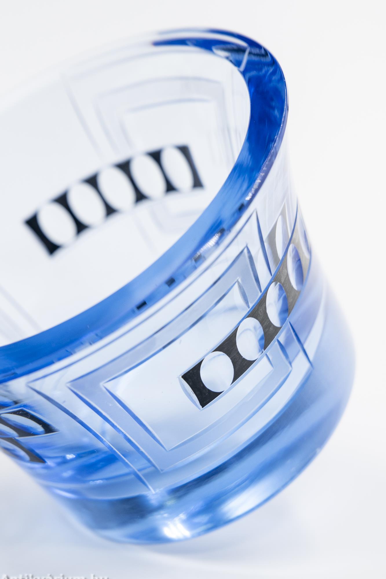 Moser - Karl Palda art deco vízkék csiszolt üveg váza 20. század első fele