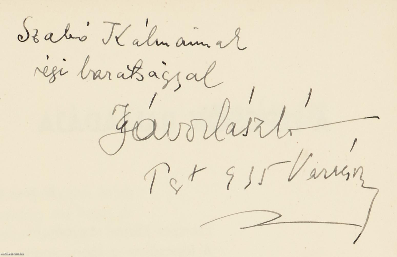 A 3. oldalon a szerző, Jávor László tollal beírt, névre szóló dedikációja olvasható: "Sz. K-nak régi barátsággal, Jávor László Pest 935 Karácsony"