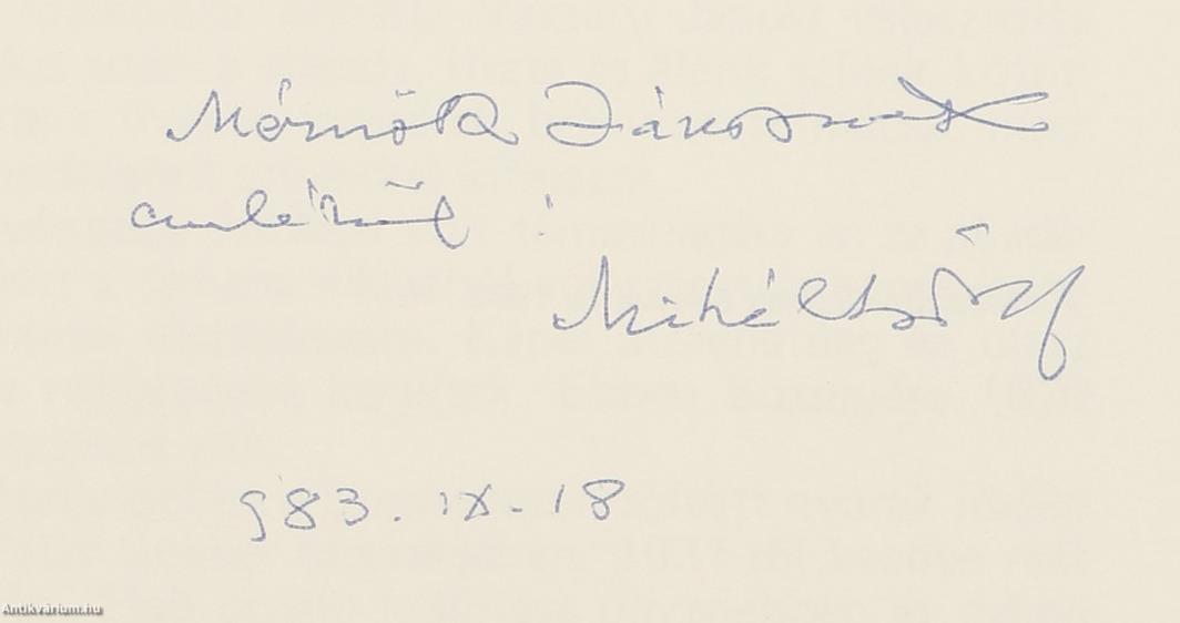 A címlapon Miháltz Pál festőművész tollal beírt, névre szóló dedikációja olvasható: "M. J.-nak emlékül: Miháltz Pál 983. IX. 18."
