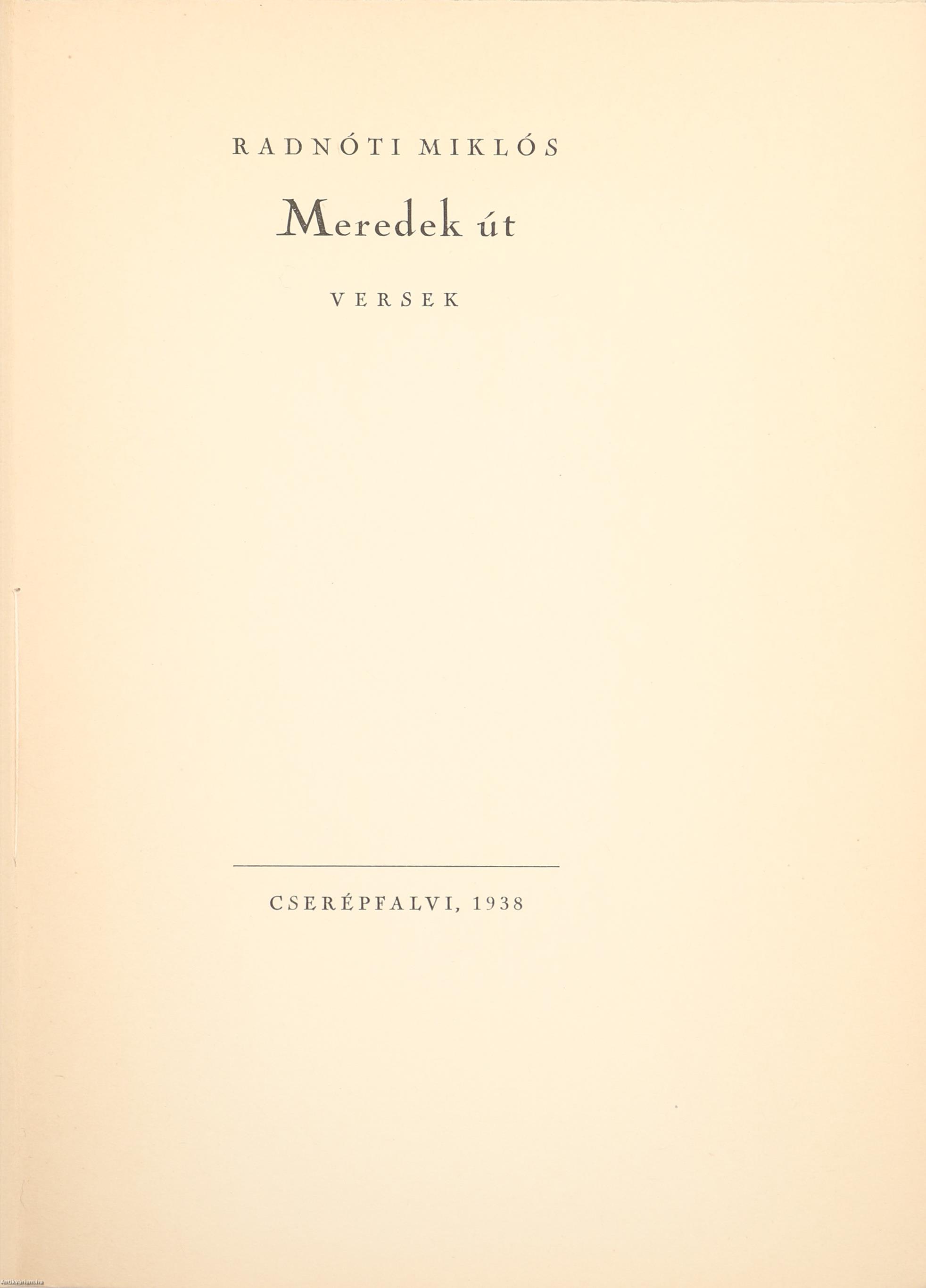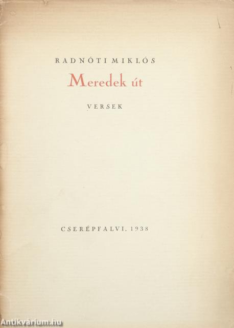 Első kiadás. Meredek út. Versek. Írta: Radnóti Miklós.