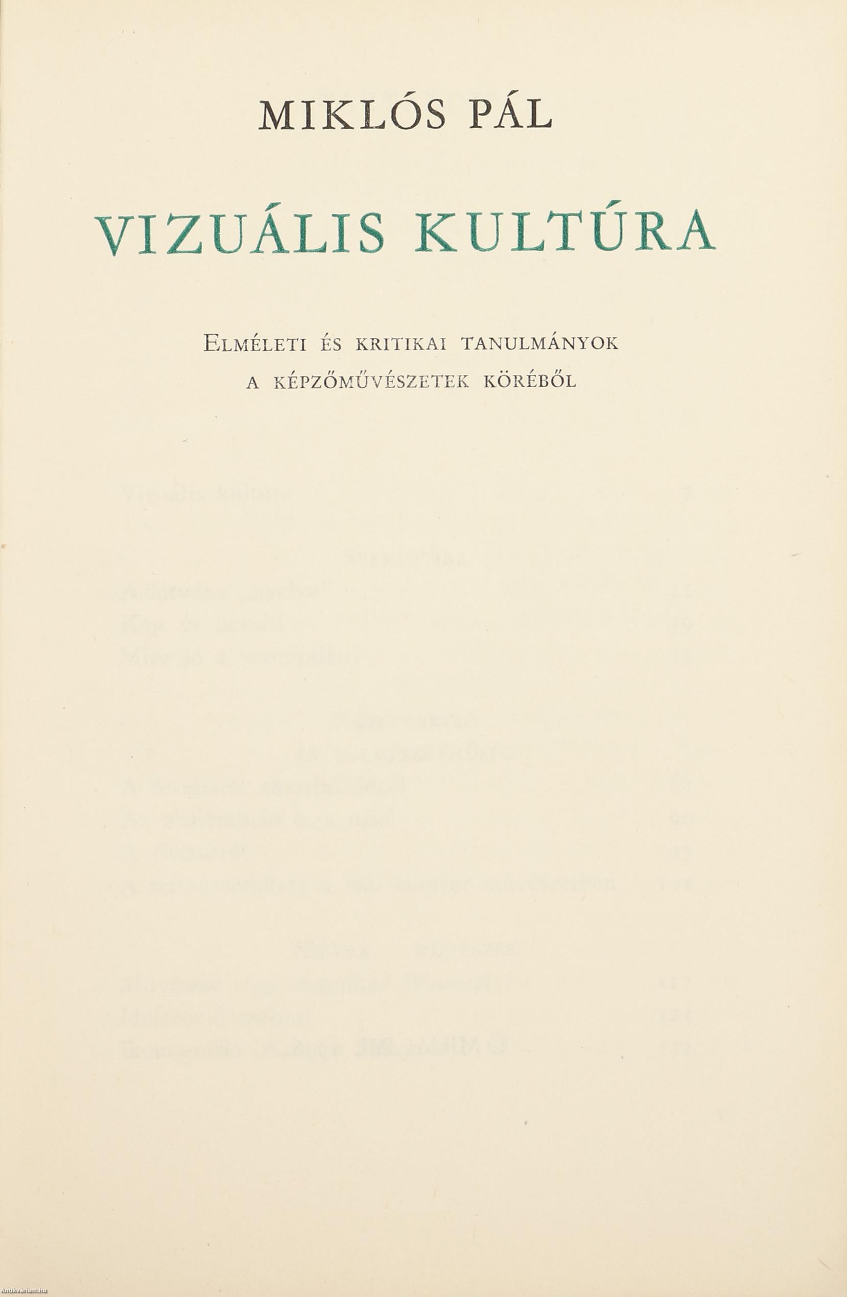 Szerző által dedikált példány.Első kiadás. Az Elvek és utak c. sorozatban megjelent mű. Vizuális kultúra. Elméleti és kritikai tanulmányok a képzőművészetek köréből. Írta: Miklós Pál.