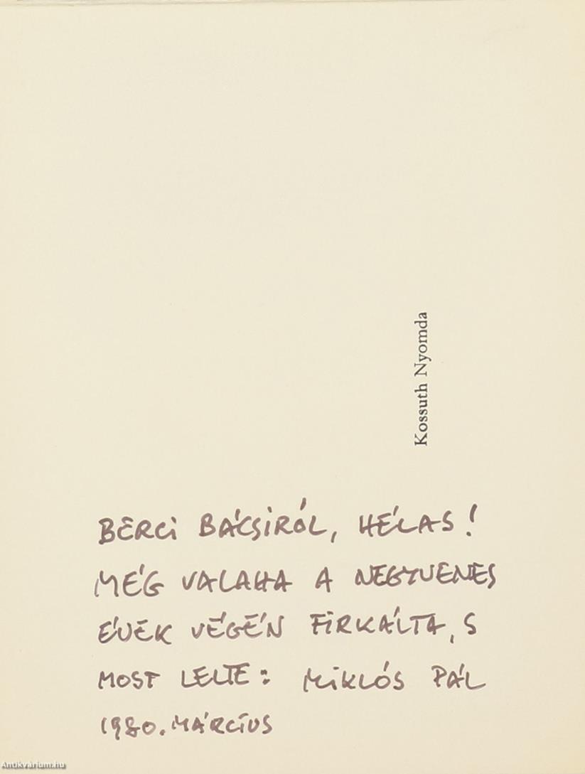 A kötet dedikálója: Miklós Pál (Diósgyőr, 1927. május 18. – Budapest, 2002. november 16. ) Munkácsy Mihály- és József Attila-díjas művészettörténész, sinológus, műfordító. 1975 és 1985 között az Iparművészeti Múzeum főigazgatója, 1985-87-ig a Hopp Ferenc Kelet-ázsiai Művészeti Múzeum igazgatója volt. 1985-től az ELTE Bölcsészettudományi Karán adott elő kínai művelődéstörténetet. Európai szinten elsők között foglalkozott a vizuális kultúrával mint önálló tudománnyal.