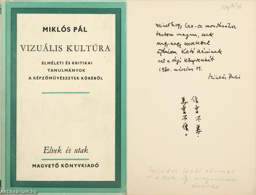 Miklós Pál: Vizuális kultúra (Kaesz Gyuláné Lukáts Katónak dedikált példány, egyedi rajz- és versmelléklettel)