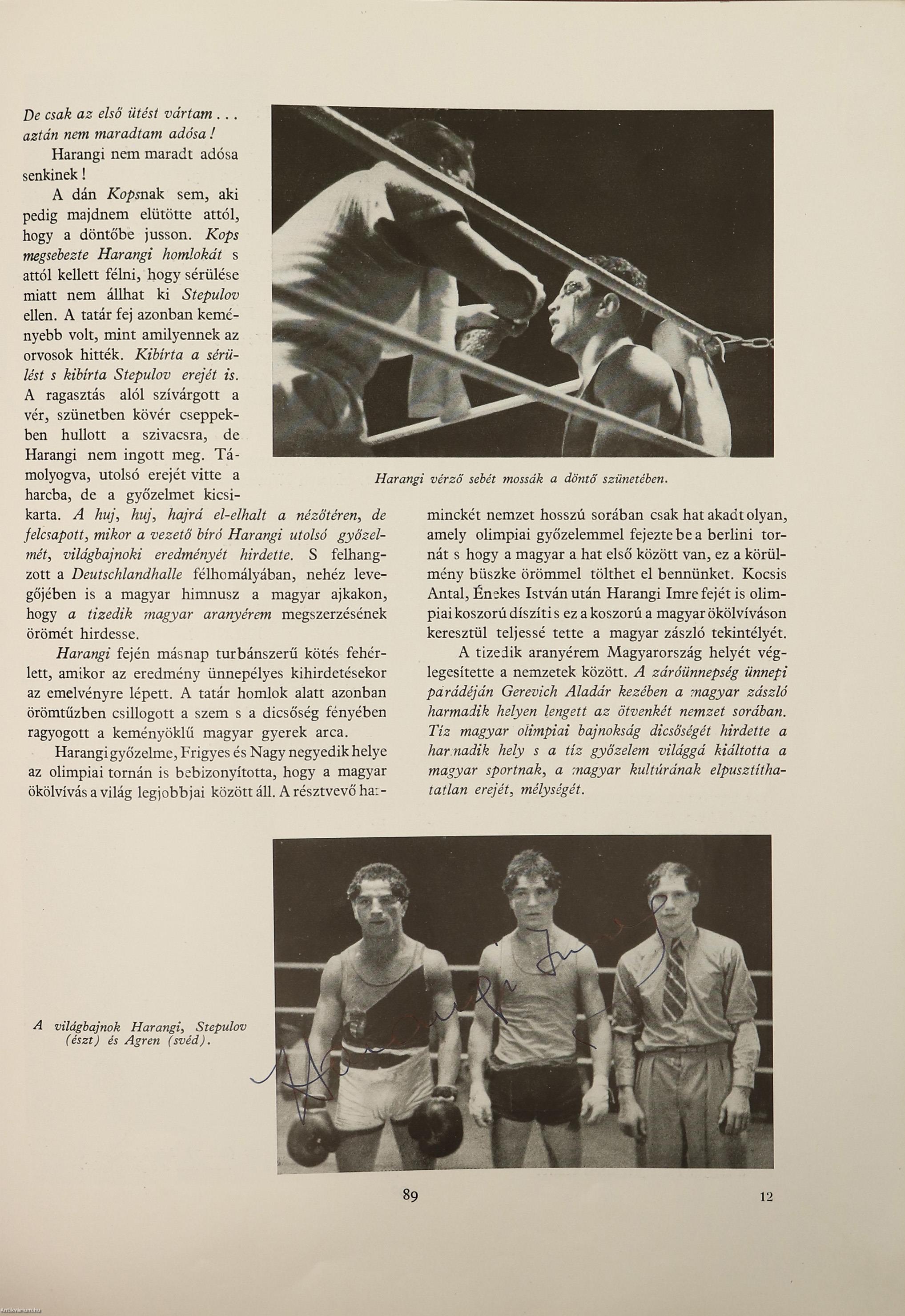 - Harangi Imre (Nyíradony, 1913. október 16. – Budapest, 1979. február 4.) olimpiai bajnok ökölvívó. Aláírása az 88. és 89. oldalon látható.