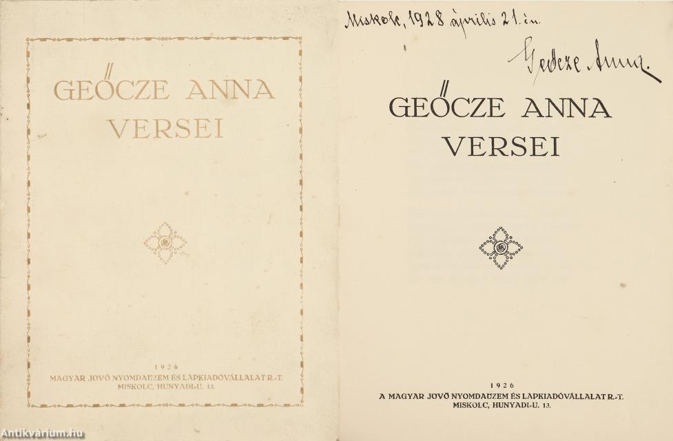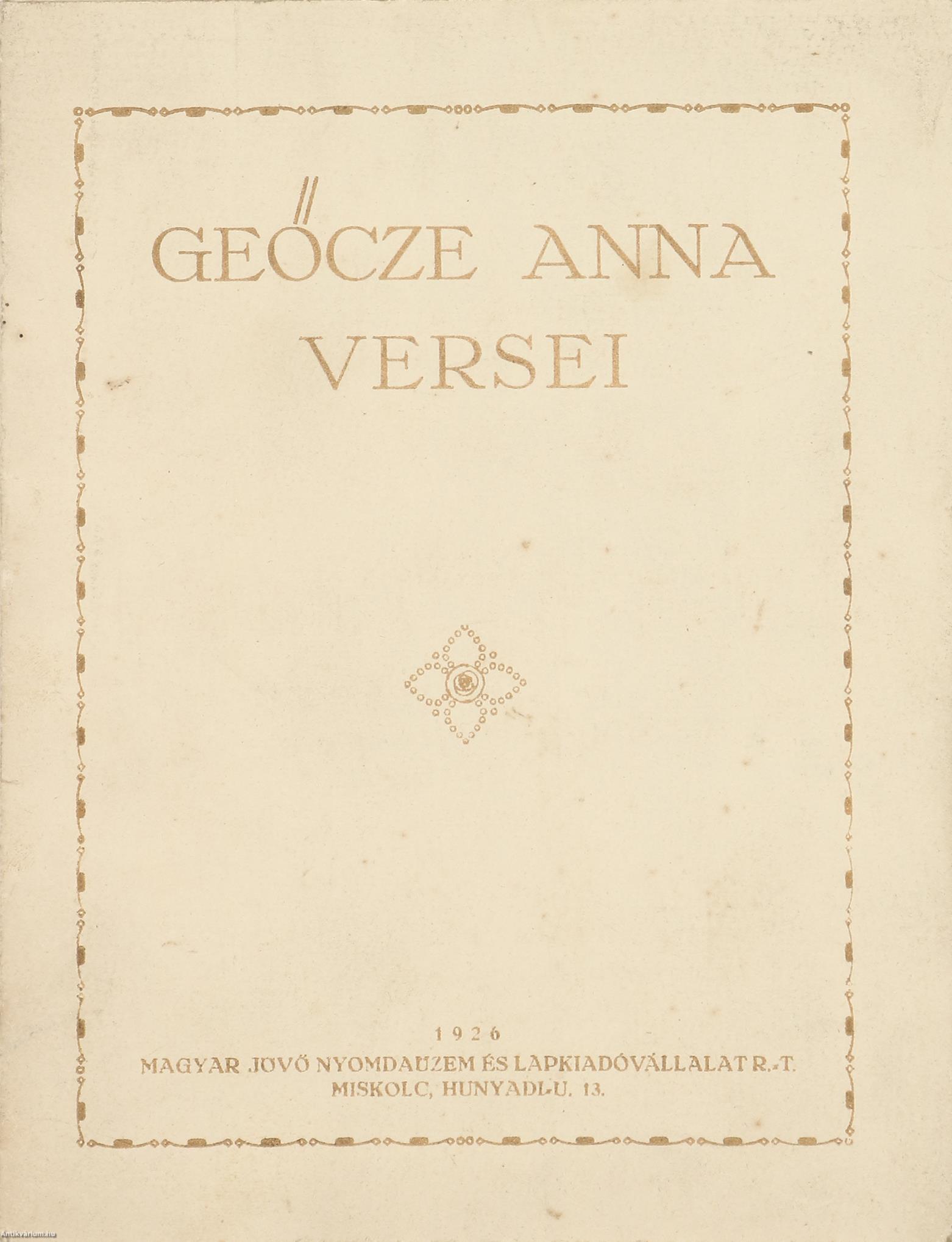 Első kiadás. Geőcze Anna versei.