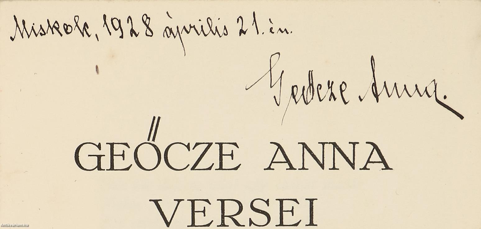 Geőcze Anna autográf verse.