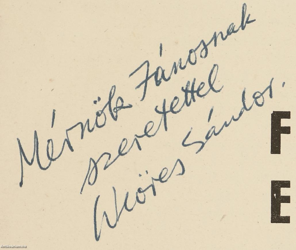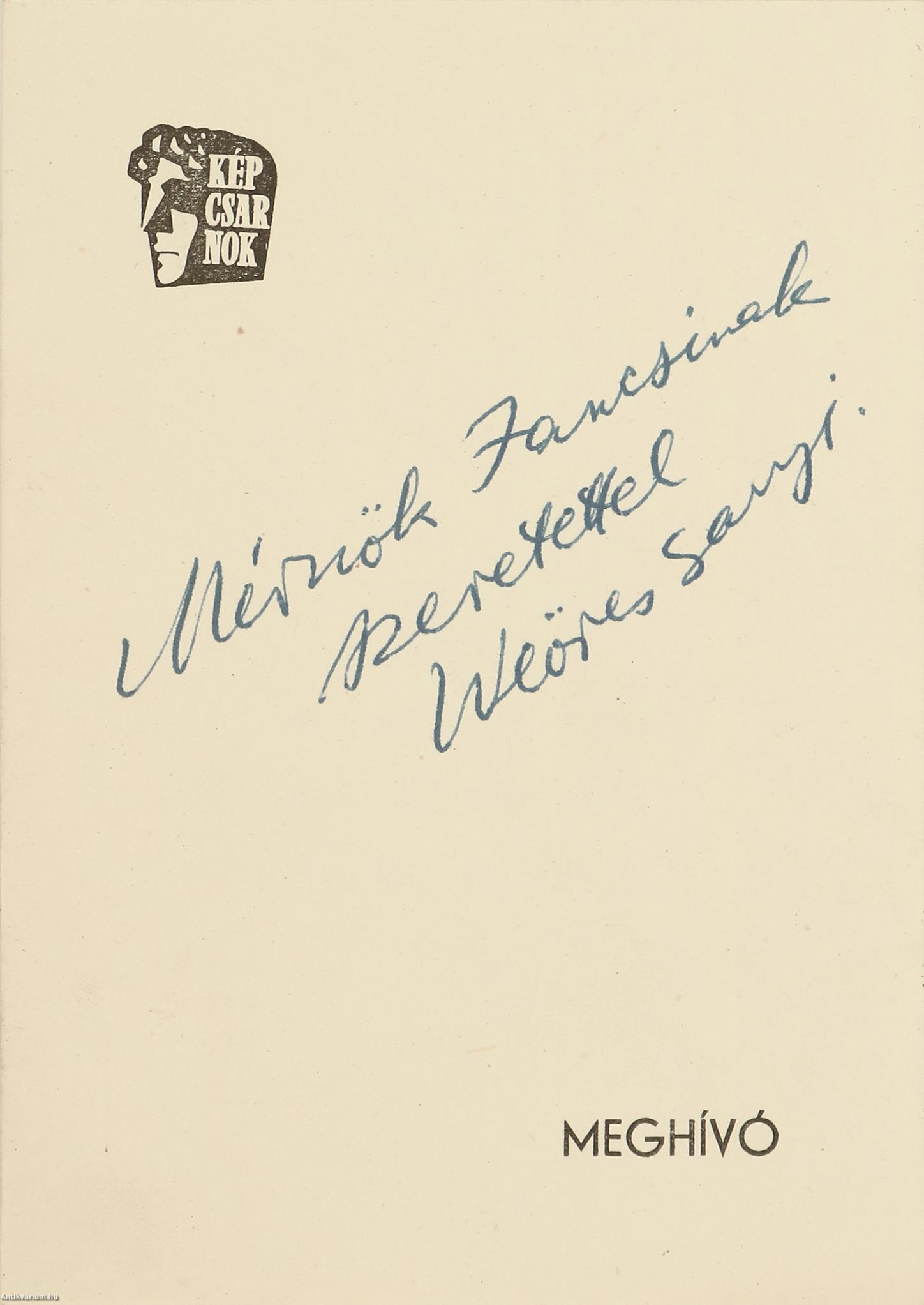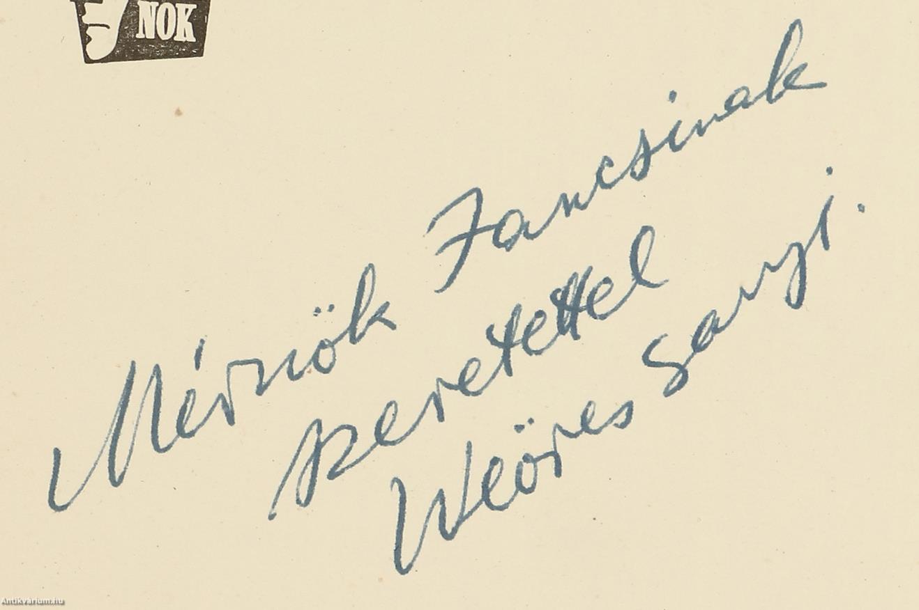 Fóth Ernő és Weöres Sándor által dedikált, valamint egy a költő által dedikált és a festőművész által aláírt melléklettel ellátott példány. Fóth Ernő festőművész kiállítása. Mednyánszky Terem. Budapest V., Tanács krt. 26. 1965. június 19-től július 3-ig.