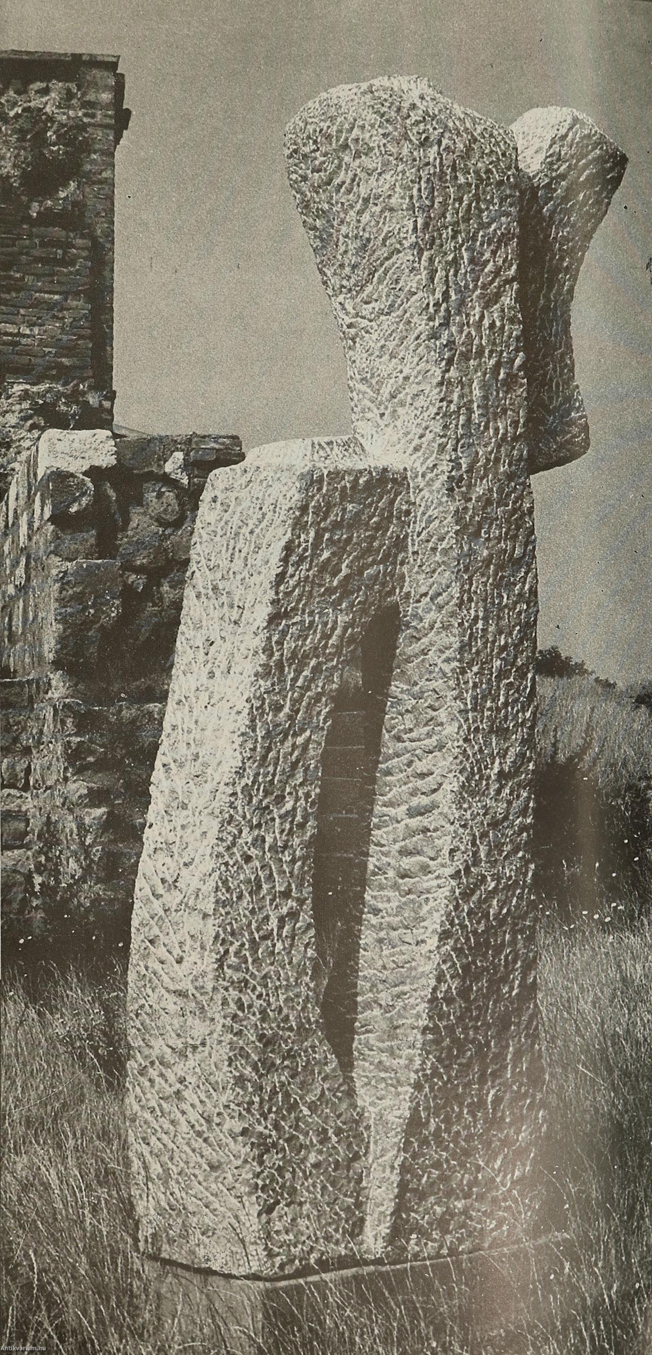 A szobrász nem mondhatja Bólyaival: "A semmiből teremtettem új világot". Feladata és művészete ellentétes: a meglevőből, a már létező anyagból - legyen ez képlékeny anyag, merev kő, folyékony fém vagy hasadó fa - kell alkotását megformálnia, - megváltoztatnia a létezőt, hogy felépítse a maga új, soha nem volt világát. Az anyagból alakító művészeten belül is különösen nehéz a kőszobrász munkája. Nemcsak a kemény, nem könnyen kiszámítható törésű anyaggal való küzdelem technikai problémáira gondolunk, hanem főleg arra, hogy művészete az "elvevés" művészete - a már meglevő nyers formából a számára fölösleges részek eltávolításával kell kibontania azt a formát, amit az anyagba belelát, ami abban lehetőségként benne rejlik és amit ezért "műalkotásnak" nevezünk. De van a szobrászatnak - és ez a megállapítás a háromdimenziós művészet egészére vonatkozik - egy másik aspektusa is. Ha a kő (tegyük hozzá a fa-) szobrászatnál a formaadás módja az elvevés, akkor ez a másik oldalt a "hozzáadás" művészetének nevezném. A szobor, a létrejött plasztikai alkotás csak a térben él és létezik, s ahogyan egy nyers formából minőségileg más formát alakít, úgy változtatja meg azt a teret, amelybe belehelyezik; a nyers térből - legyen ez természetes, vagy falakkal határolt művi tér - alkotott teret, újabb műalkotást hoz létre.