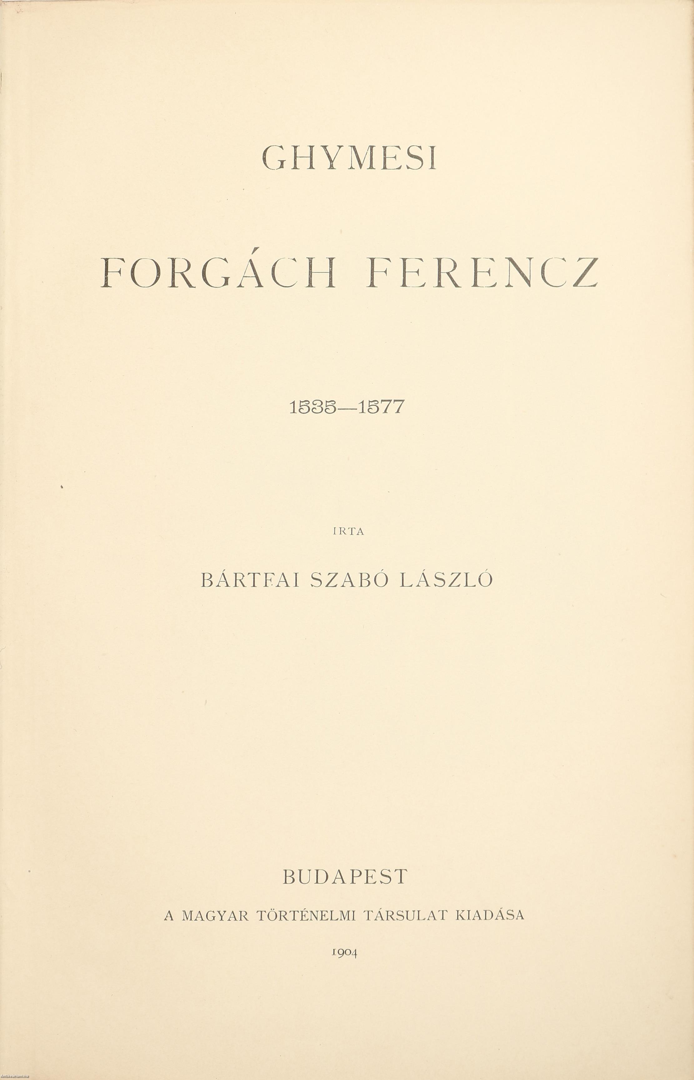 Báthory és Forgách Ferencz. A «testa-mentumos urak» politikája. Forgách házassági szándéka nem sikerül. Brutus János Mihály meghívása Erdélybe. Lengyel királyválasztás III. Zsigmond halála után. A történetiró Lengyelországban. A Békéspárt bukása. Forgách megkezdi évkönyvei megírását. Betegsége gyógyítására Páduába megy s ott hal meg 1577. január 19-én. (163—208.)