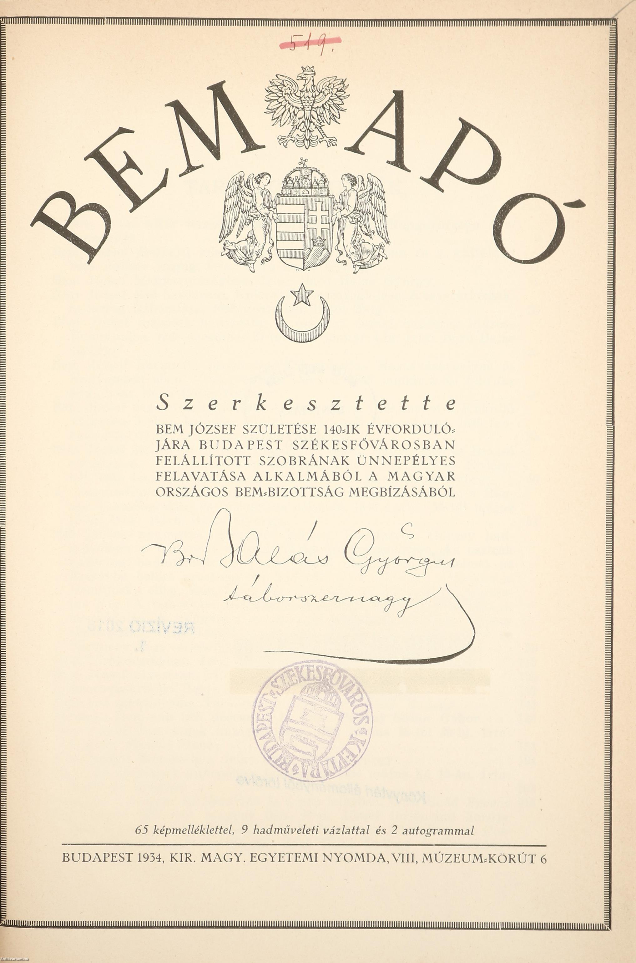 | Bem apó a magyar költészetben és a nép lelkében. Írta: Saád Ferenc | 216 |