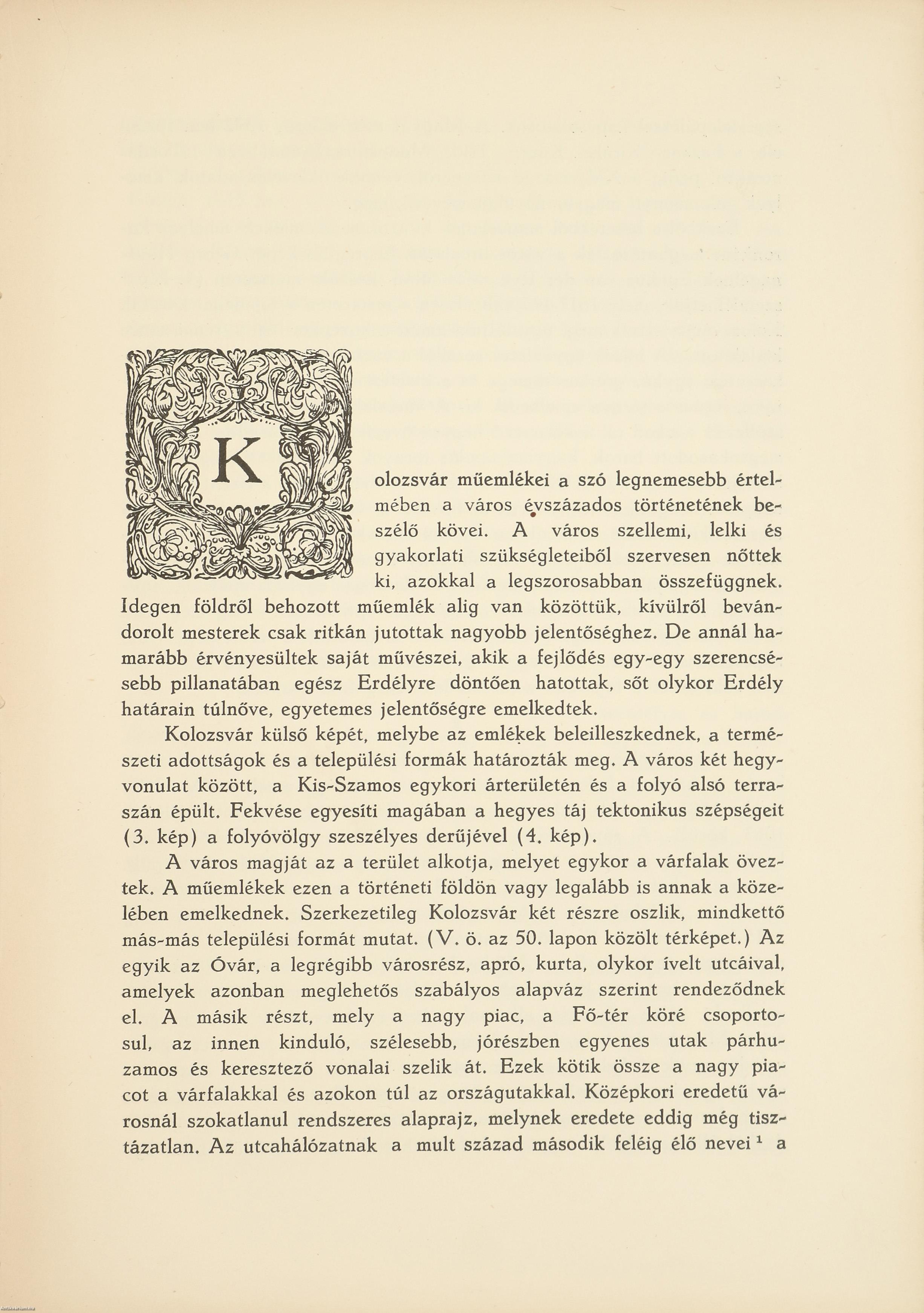 Az itt következő tanulmány Kolozsvár művészetének nem rendszeres története, hanem csak a város jelentősebb műemlékeinek rövid seregszemléje. Bár Kolozsvár irodalma rendkívül nagy és gazdag, - az...