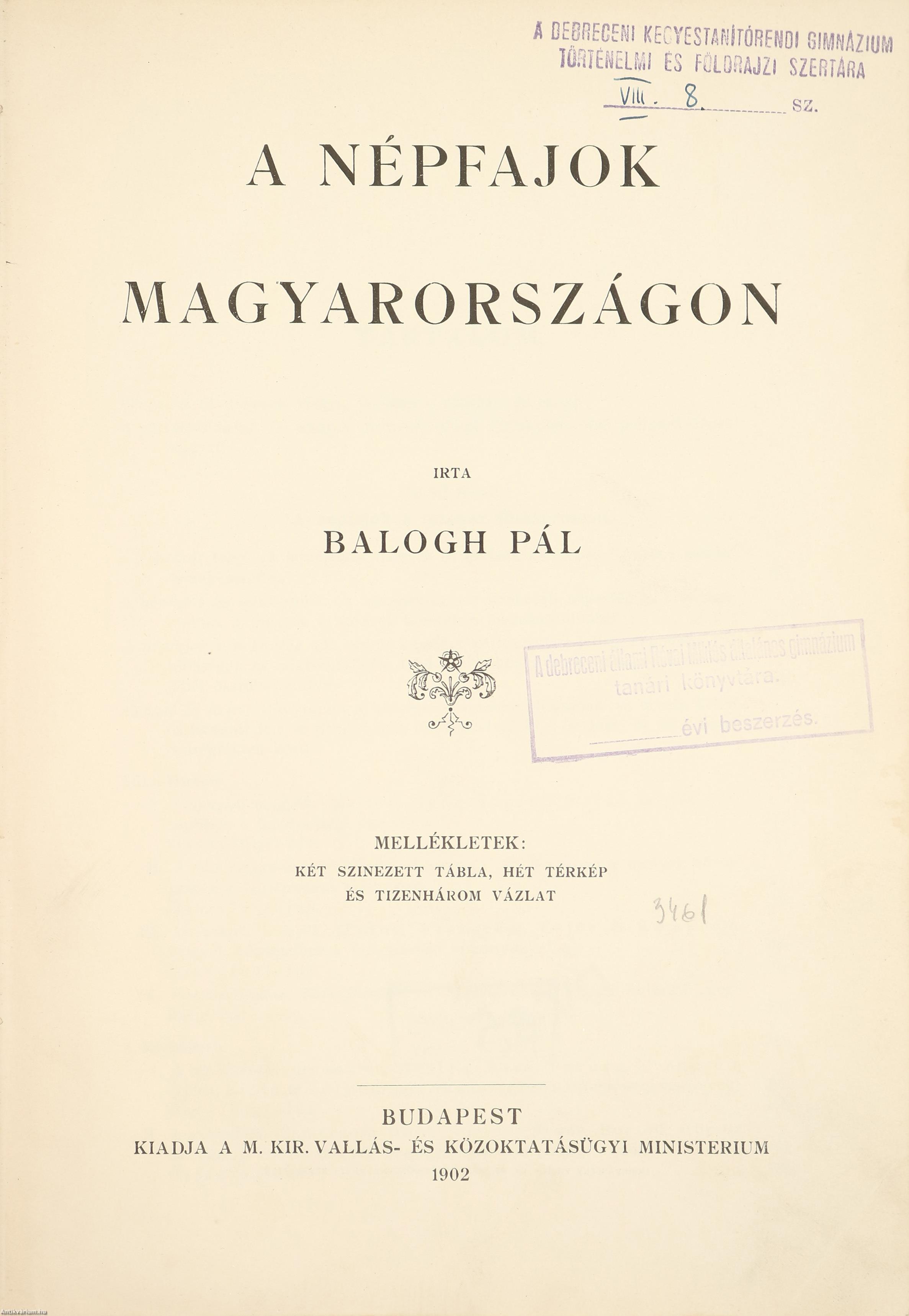 | A palóczföld. (Esztergom, Hont, Nógrád, Heves, Borsod, Gömör és Abauj-Torna megyék községeiben a fajnépességi viszonyok) | 462 |