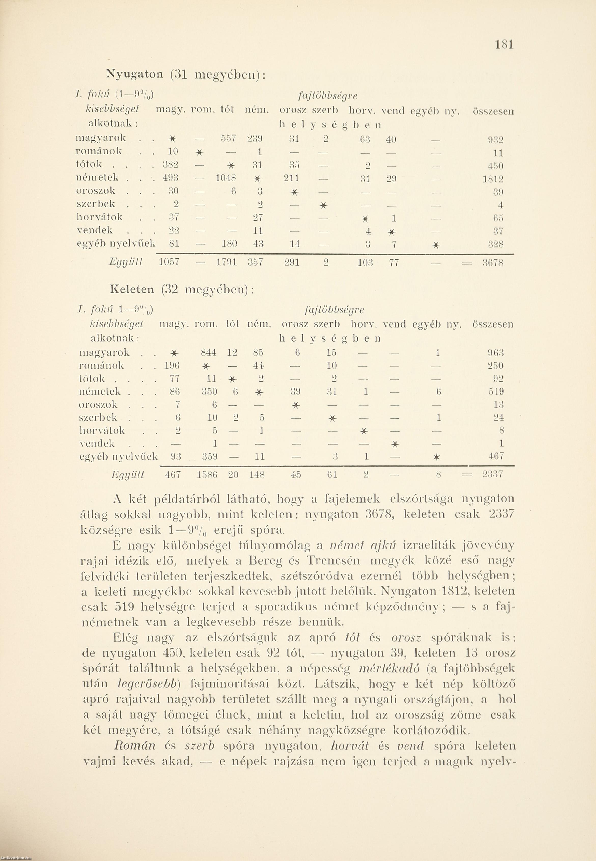 | Nyugat és kelet. (Folytatása a községek összehasonlításának az ország keleti és nyugati fele, a Királyhágón túli s az alvidéki, s felvidéki és túl-a-dunai országrészek közt) | 171 |