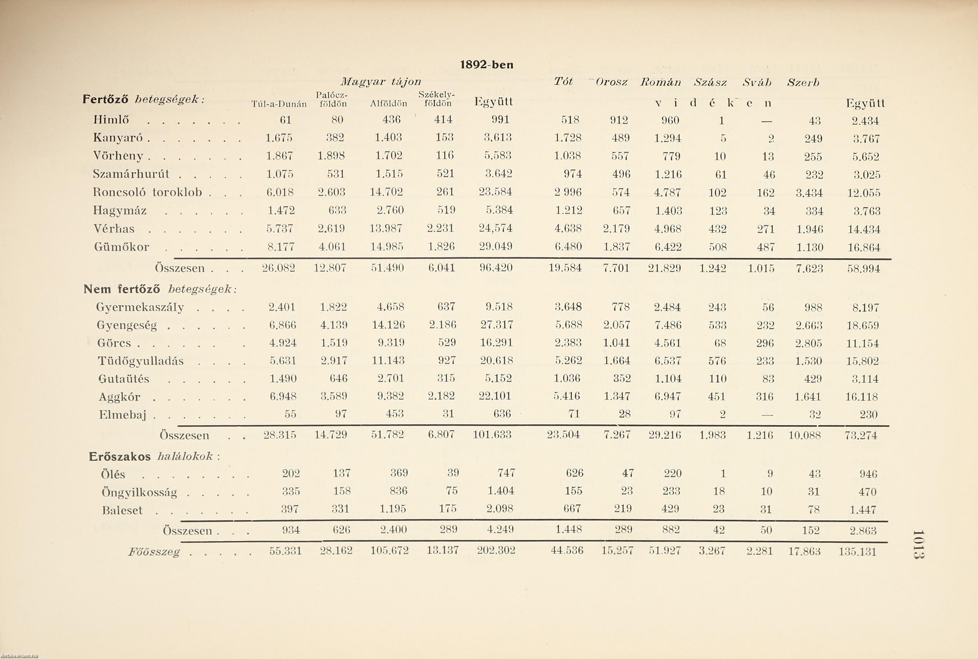 | A népfajok és a község. (Az ország községei közigazgatási jelleg, népbőség, fajtöbbségük és fajkisebbségük, felekezeti többség és kisebbségek szempontjából összehasonlítva) | 134 |