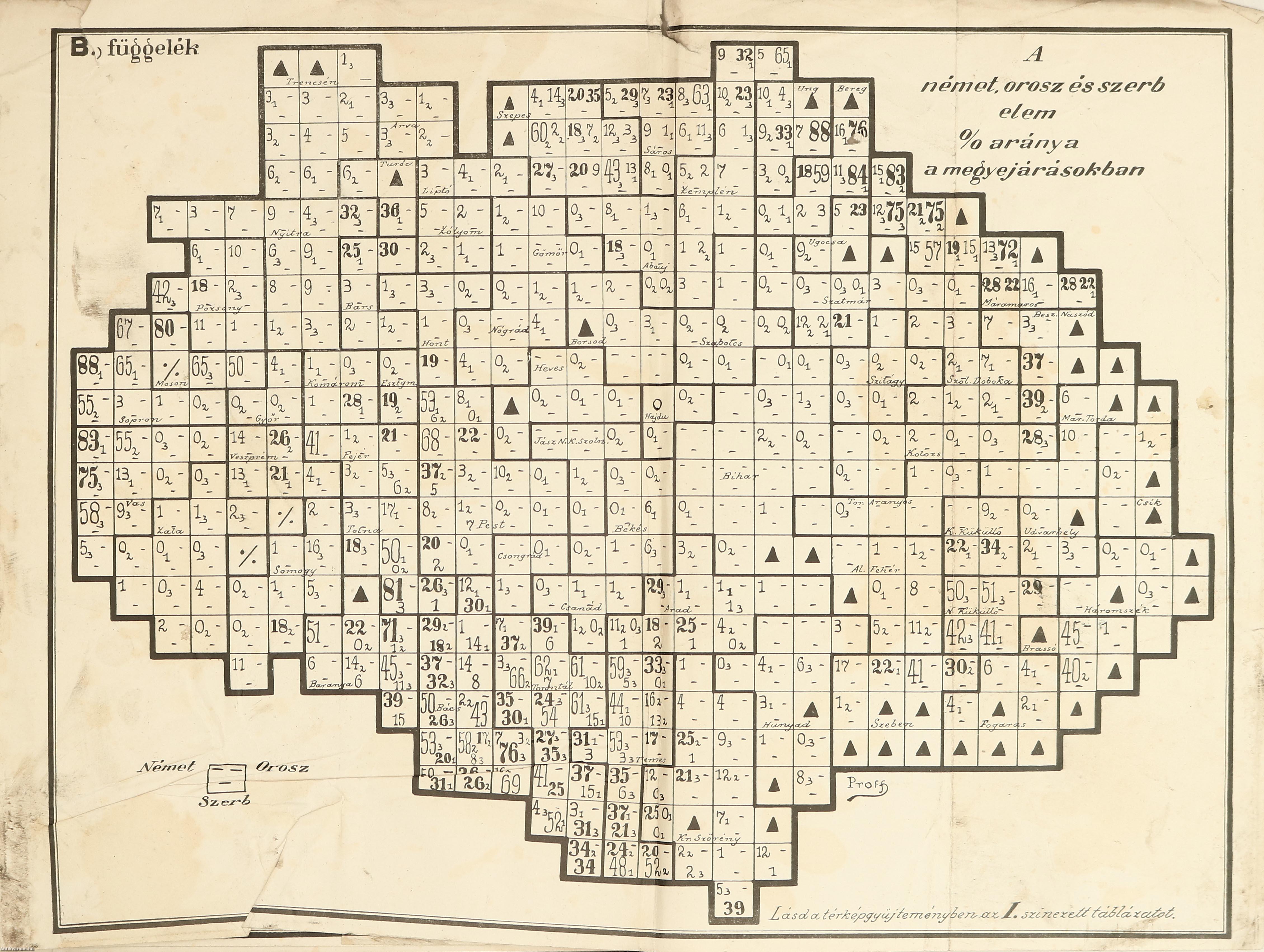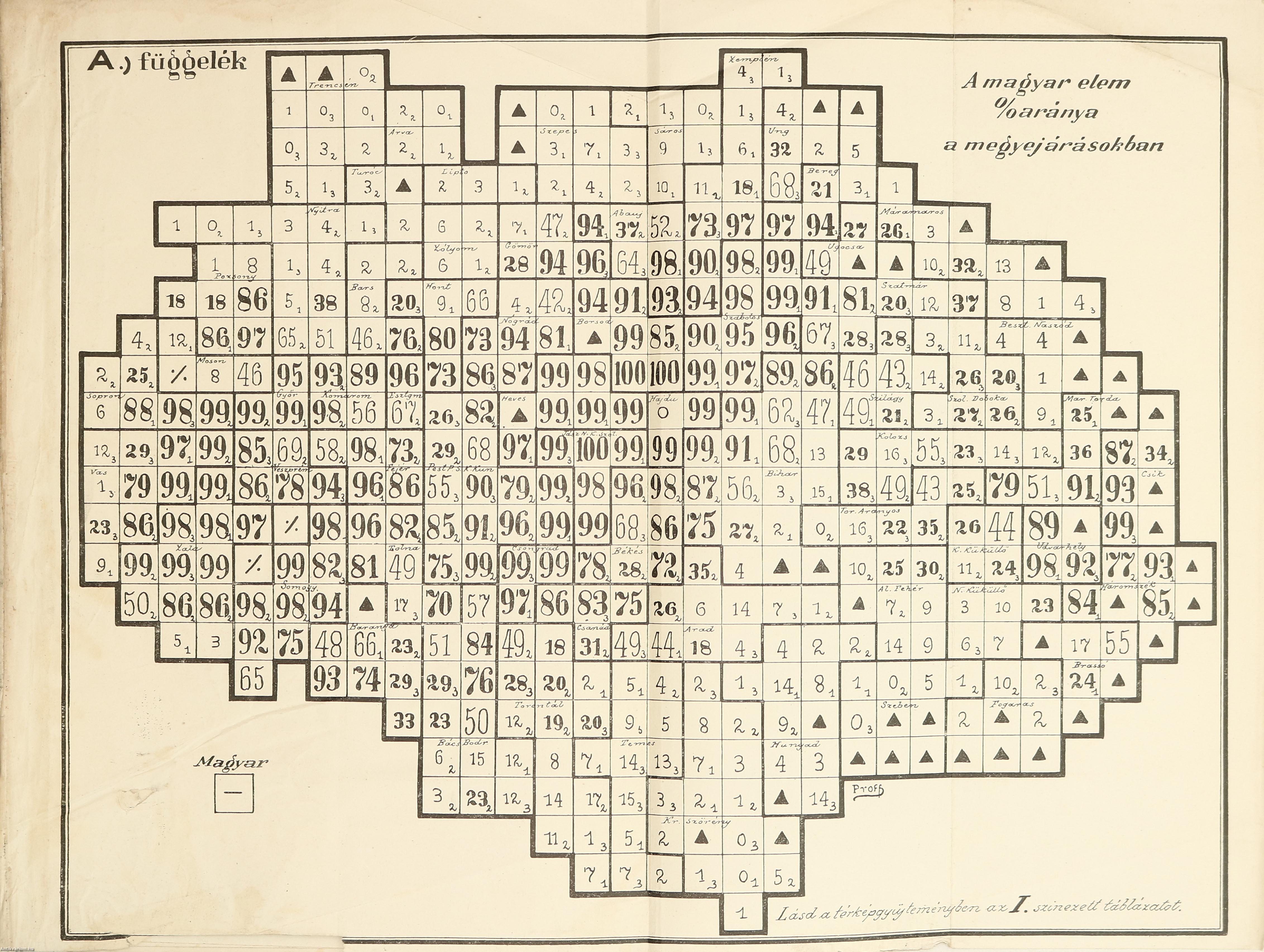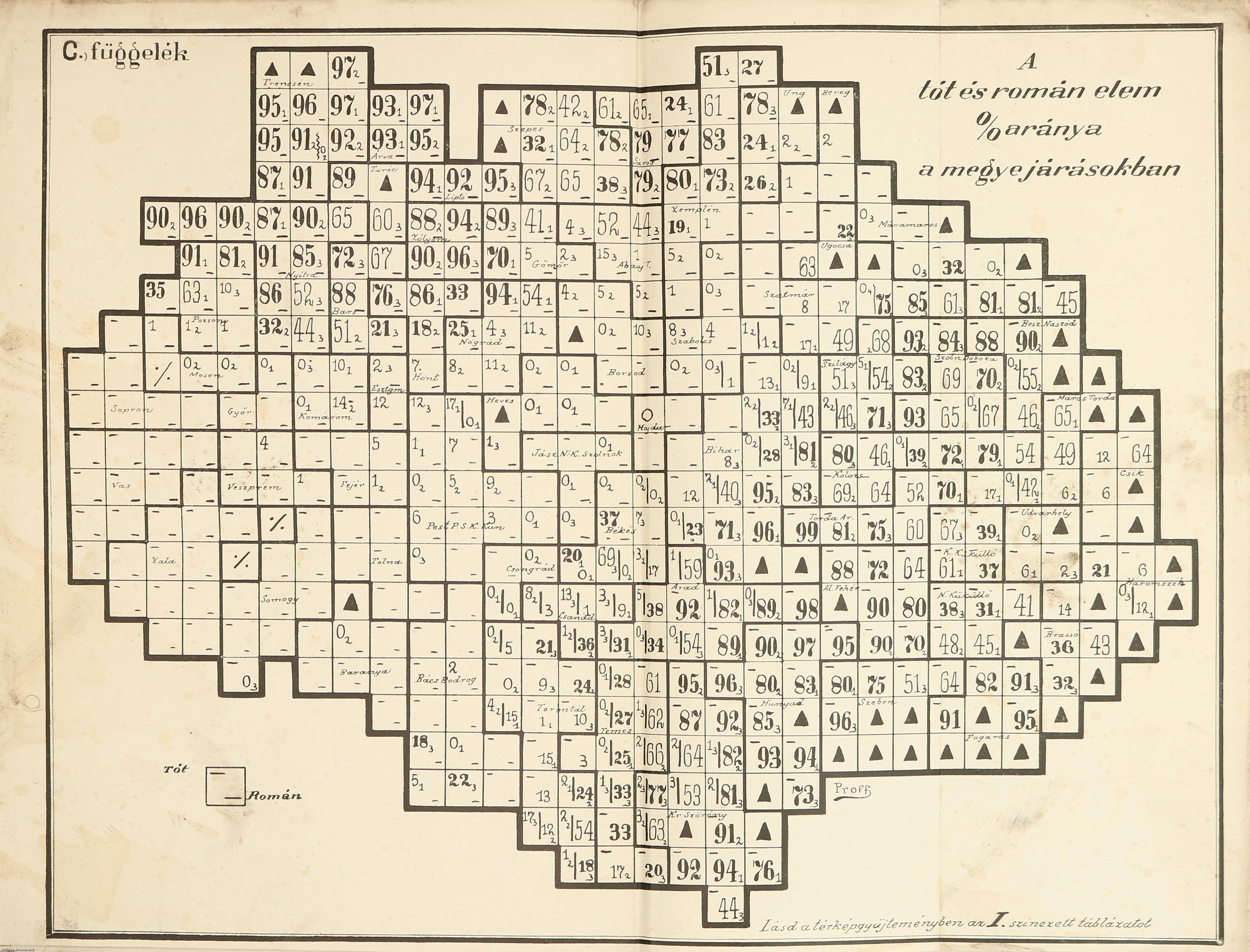 | Az etnikai talaj. (A fajnépek a megyék és járások keretében % arány szerint összehasonlítva) | 57 |