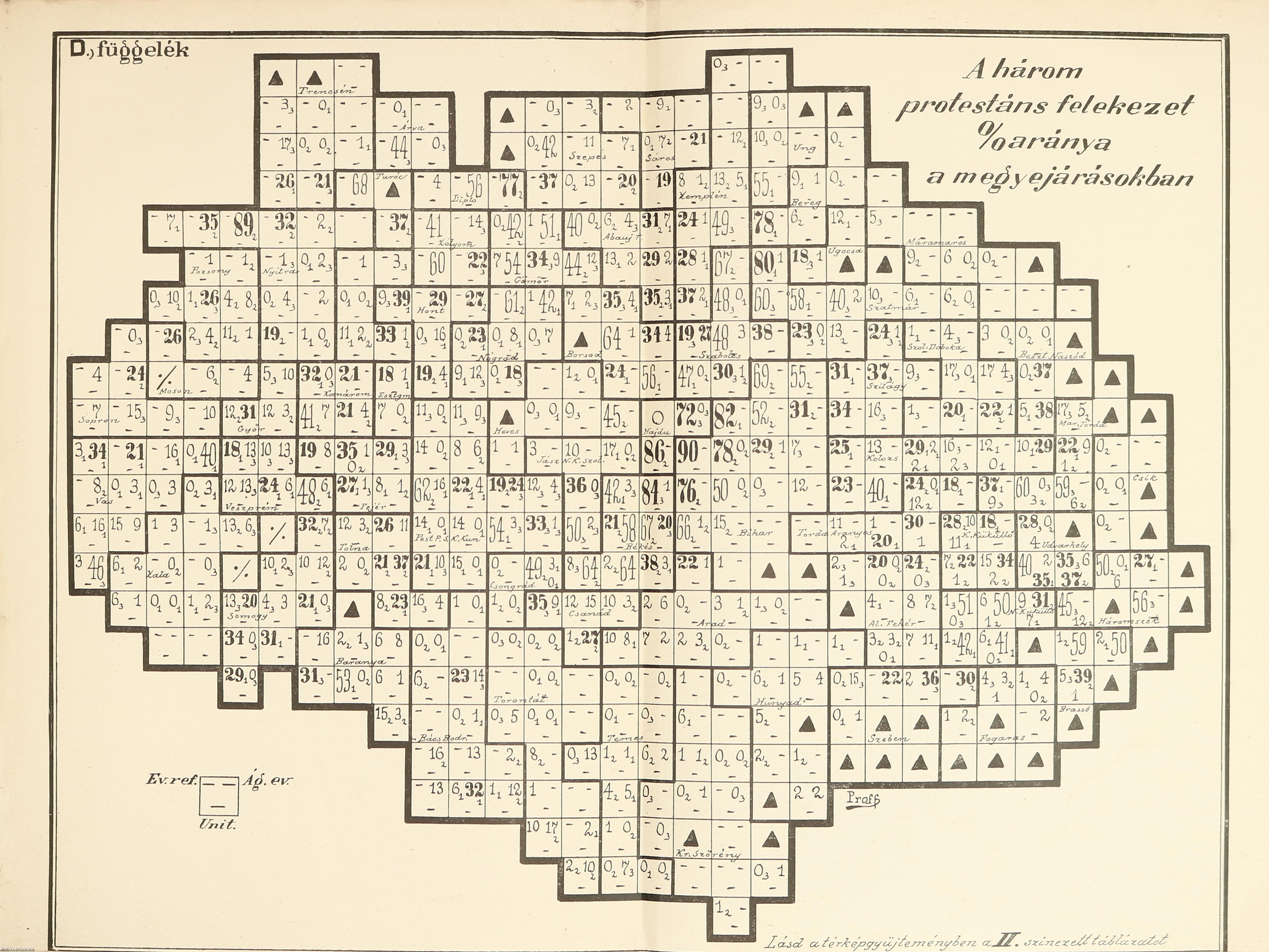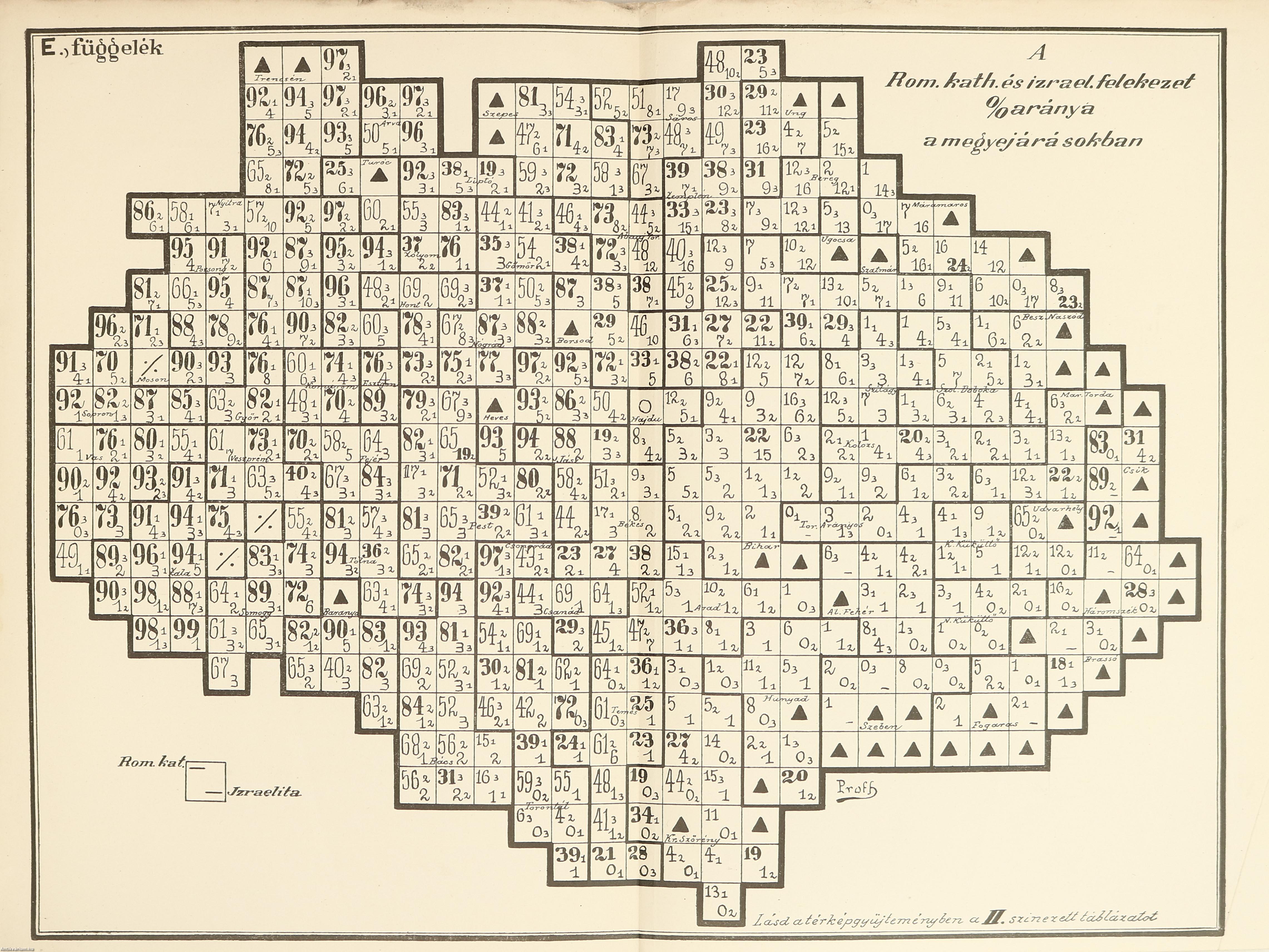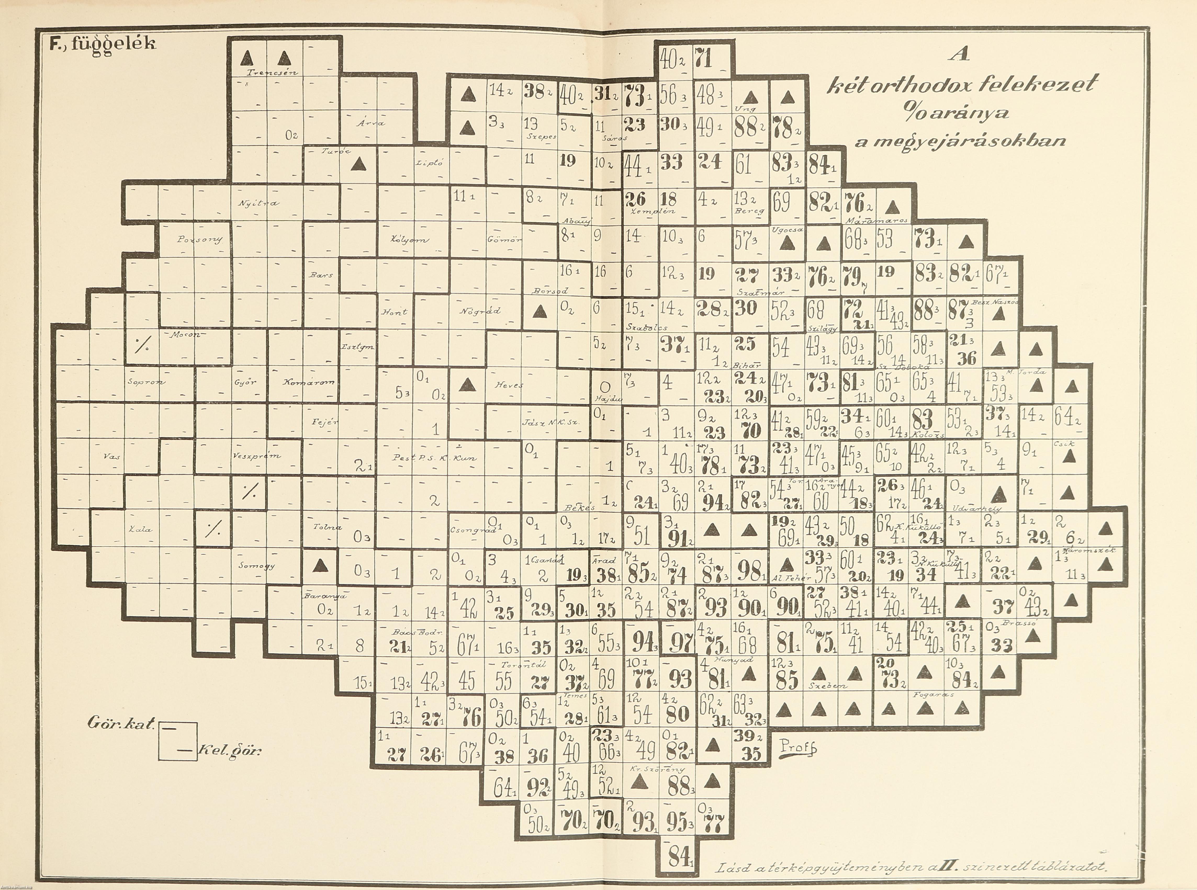| A népfajok és felekezetek. (A fajnépesség s a felekezeti népesség % arányszámainak a megyék és járások keretében össszehasonlítása) | 104 |