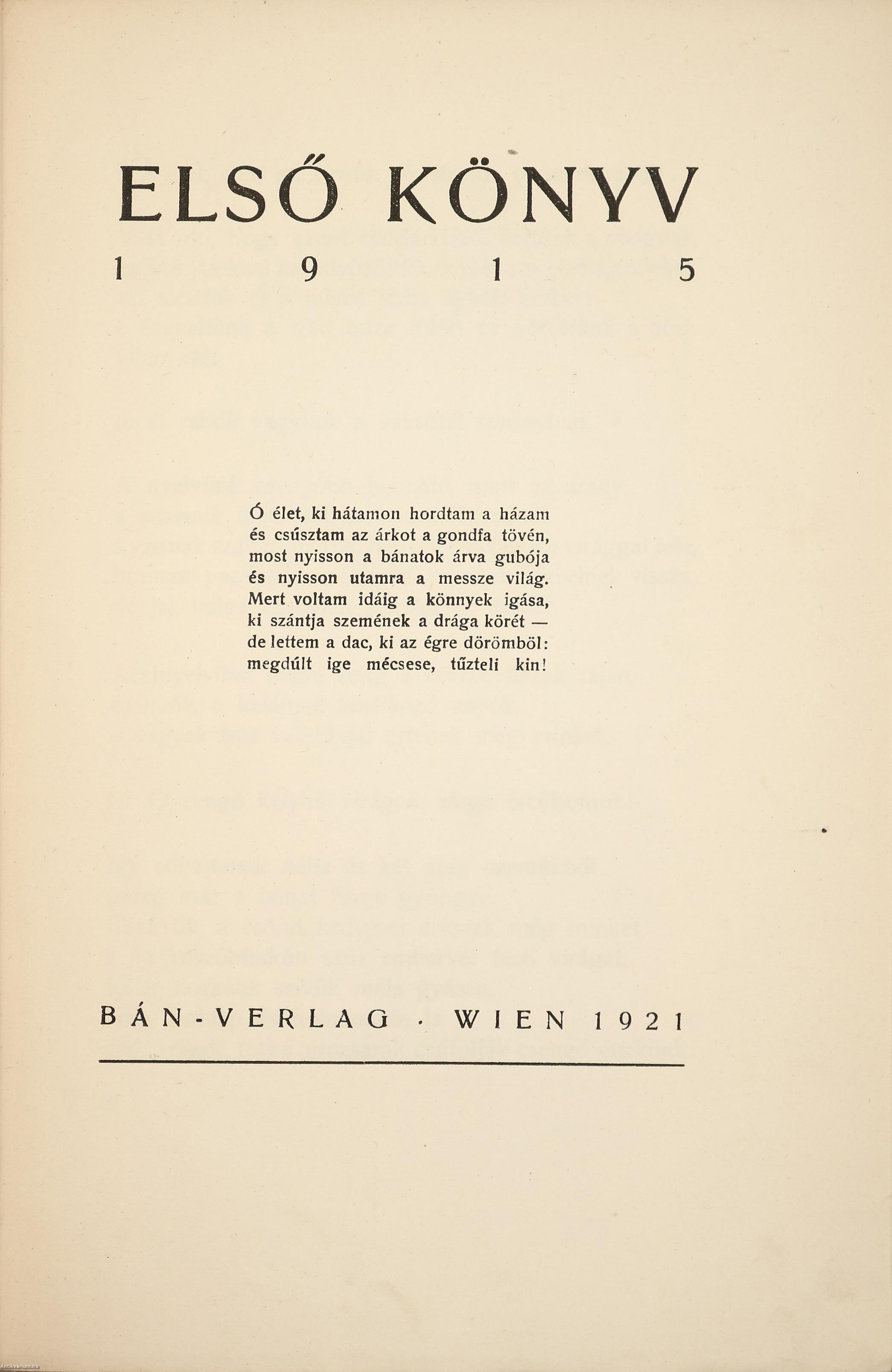 Wien [Bécs], 1921, Bán-Verlag, 145 p. + [3] p.