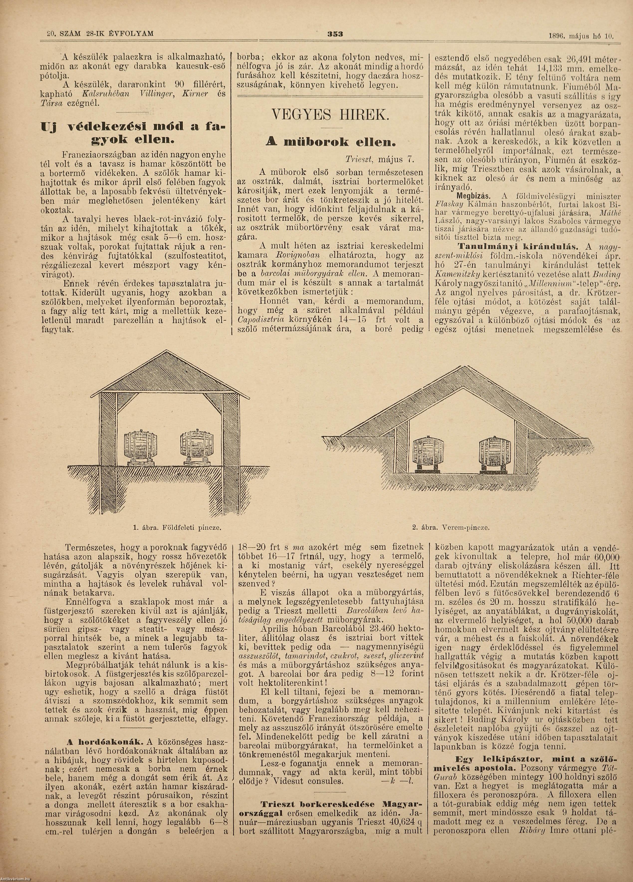A bortörvény reviziója. - A filloxera-kölcsönök folyósitása tárgyában. - Gazdasági előadó. - Filloxera. - Felhivás gyümölcsfa mütrágyázási kísérletekre. - Homoki merlot-bor Angliában. - Hamis igazolvány az olasz boroknak. - Gummiszalag helyett guttapercha. - Növénykórtani állomás. - Az idei termés 735