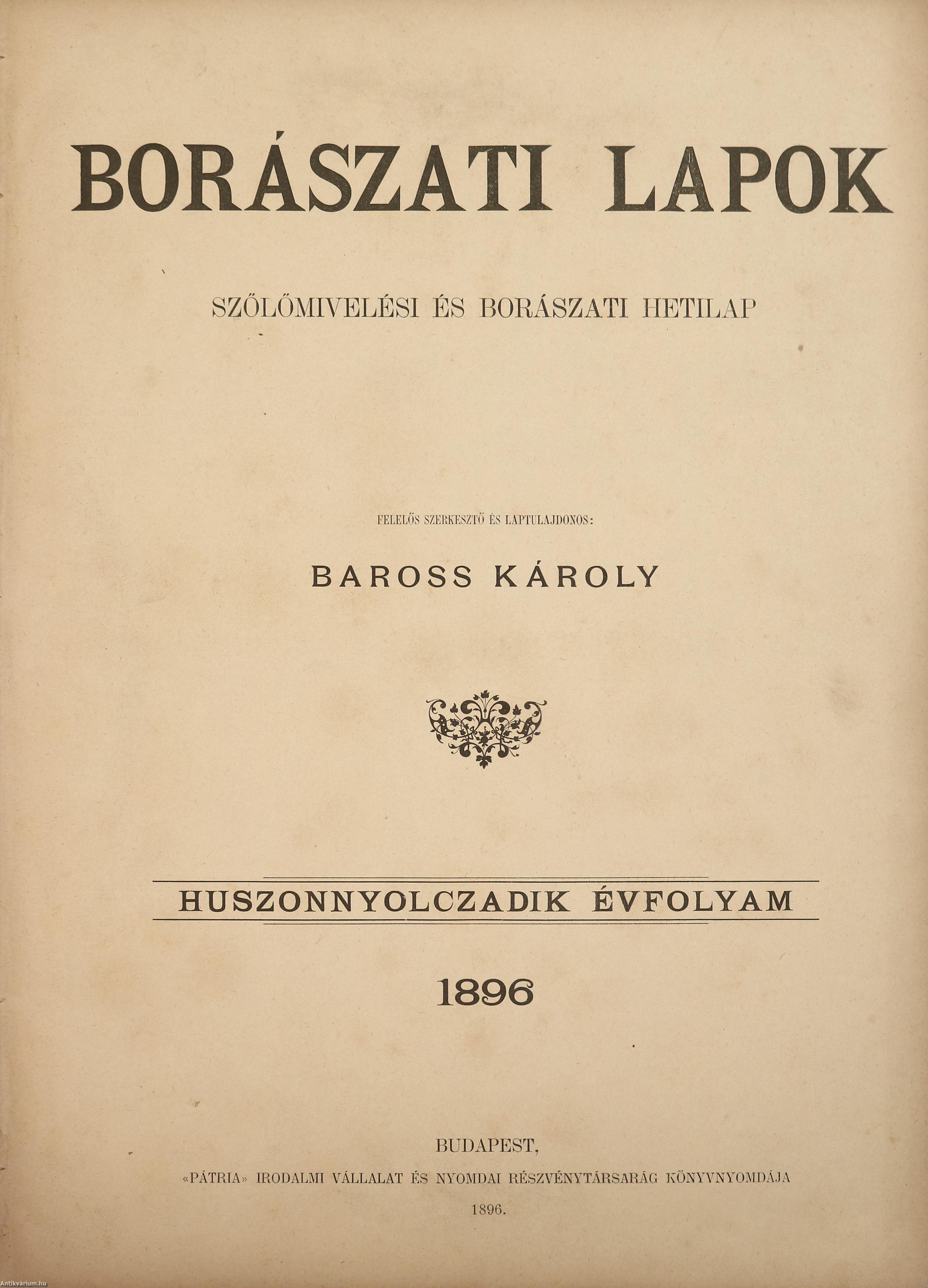Gazdasági tudósitó. - Filloxera-zárlat. - A filloxera Kolozsvárott. - A filloxera Bulgáriában. - A gyöngyösi és gyöngyösvidéki szőlőszeti egyesület. - A katonaság idő előtt való szabadságolása. - A Magvar Agrár- és Járadékbank. - Borvásár Budán. - Pályázat. - Felhivás thanatonnal való kisérletezésre. — Szőlőkiállitás Francziaországban. — Jégeső és felhőszakadás. — Pasteurizáló készülékek. — A black-rot a franczía képviselőházban. — Németország és Spanyolország. — A szőlőmoly. — Szőlők pusztulása. — A pápa bora 503
