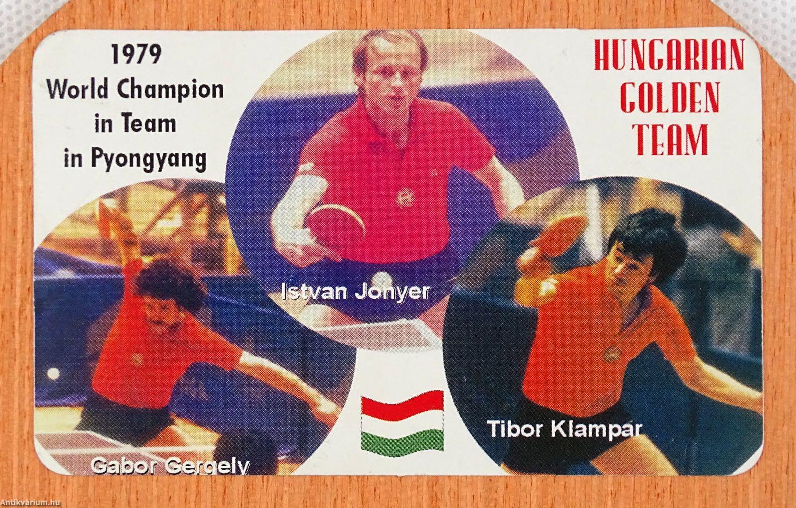 A relikvia mindkét oldalán a 35. asztalitenisz világbajnokságot idéző, ragasztott címke található (felirat: 1979 World Champion in Team in Pyongyang. Hungarian Golden Team). A jeles eseményt 1979. április 25. és május 6. között rendezték meg Phenjanban, ahol a férfi csapatversenyt megnyerte a magyar válogatott: Gergely Gábor, Klampár Tibor, Jónyer István. A következőket írta az eseményről a Békés Megyei Népújság: "...Hatalmas magyar sikerrel fejeződött be a férfi csapatverseny a Phenjanban zajló asztalitenisz világbajnokságon: a Gergely Gábor, Klampár Tibor, Jónyer István összeállítású válogatott a döntőben 5:1 arányban fölényesen legyőzte a Kínai NK csapatát és 27 év után Magyarország ismét csapatvilágbajnoki címet nyert...". - (1979. május 03./34. évfolyam/101. szám).