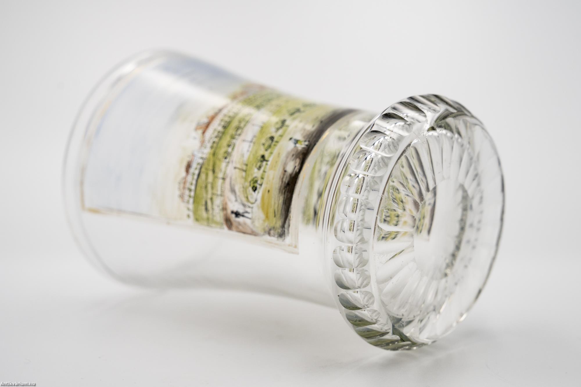 Osztrák biedermeier festett üveg pohár 19. század első feléből