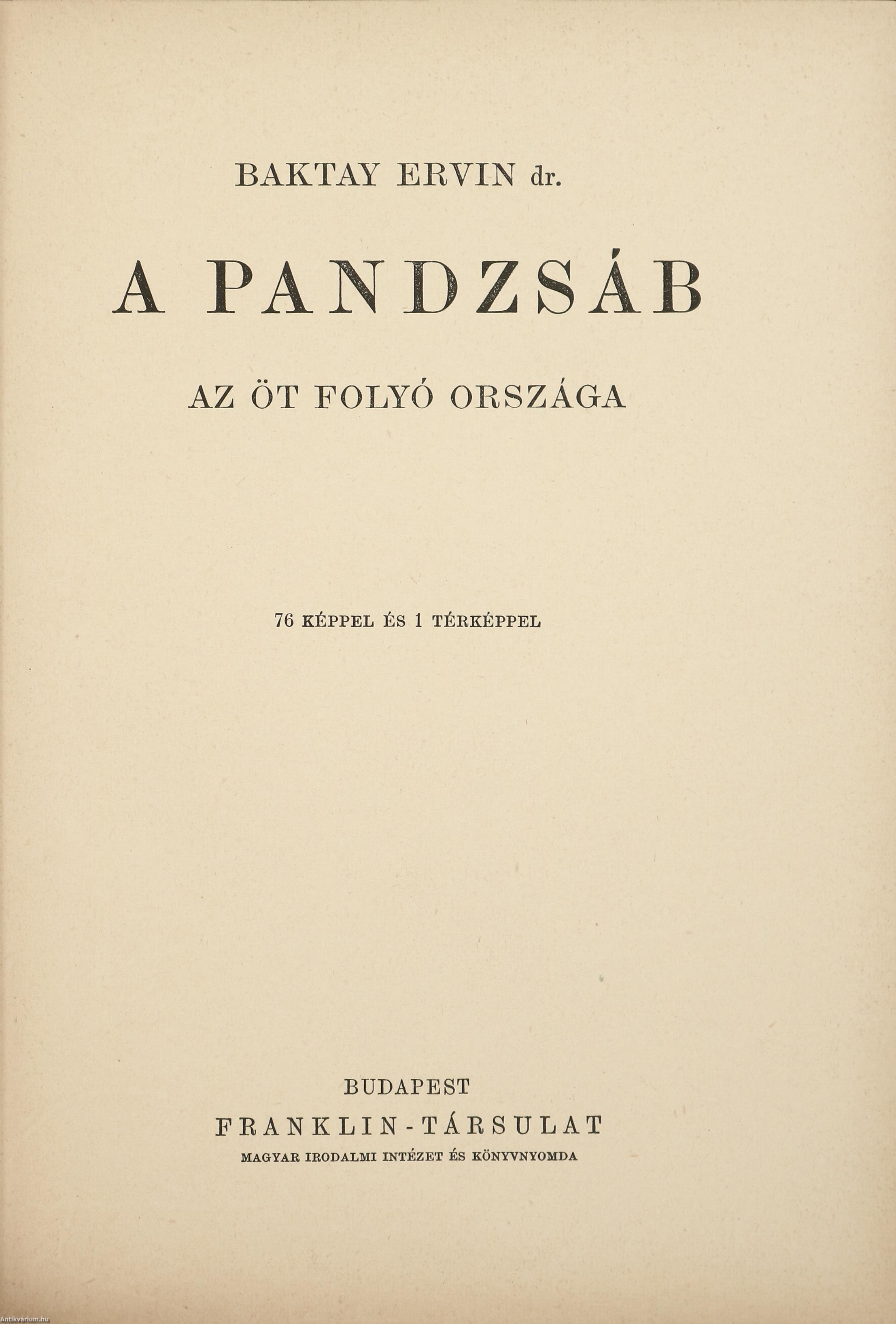 A Pandzsáb. Az öt folyó országa. Írta: Baktay Ervin.