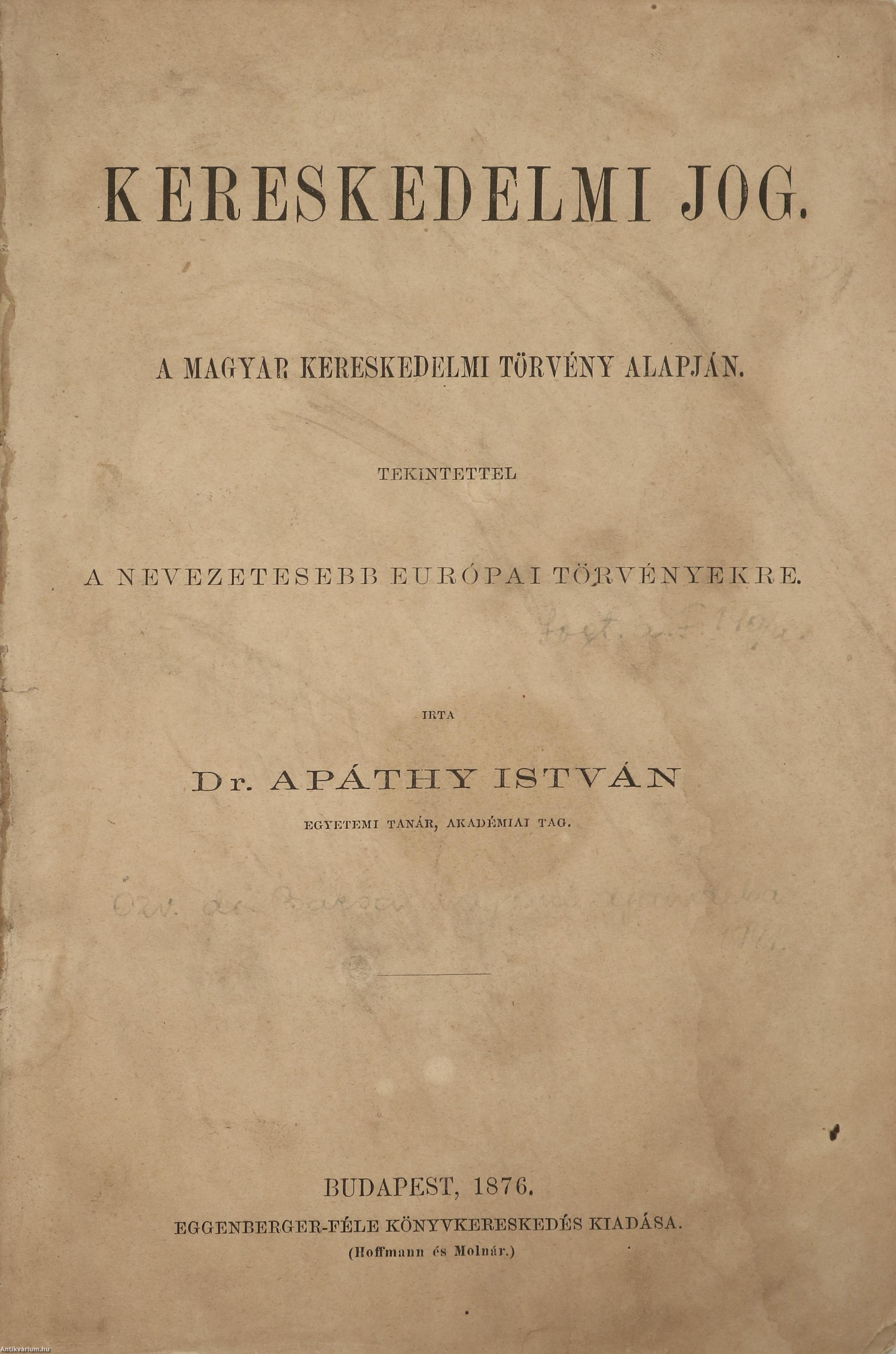 ELSŐ RÉSZ. Kereskedők és kereskedelmi társaságok.