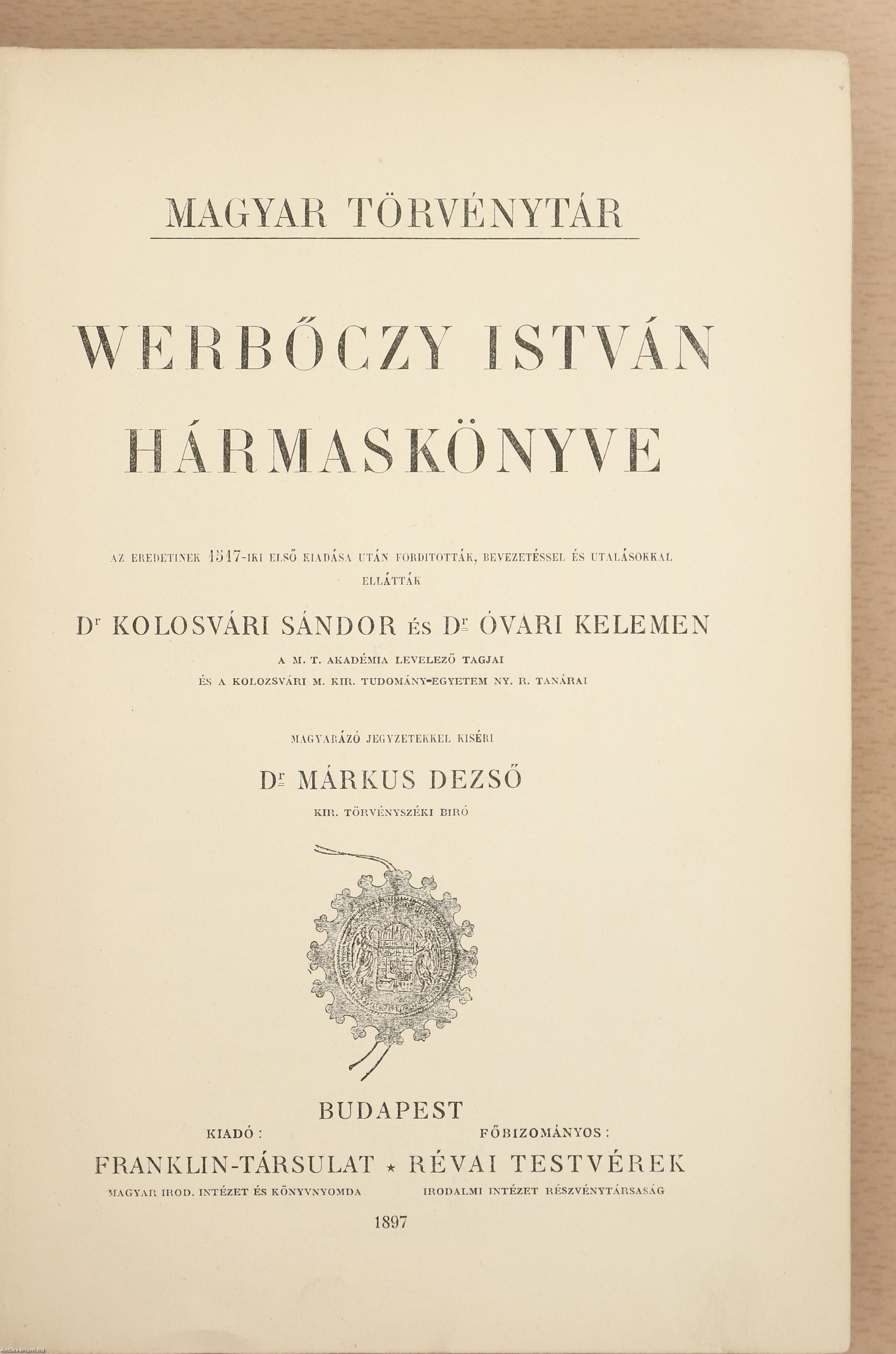 1. czím: Nemes Magyarország jogainak és szokásainak hármas felosztásáról általában 53