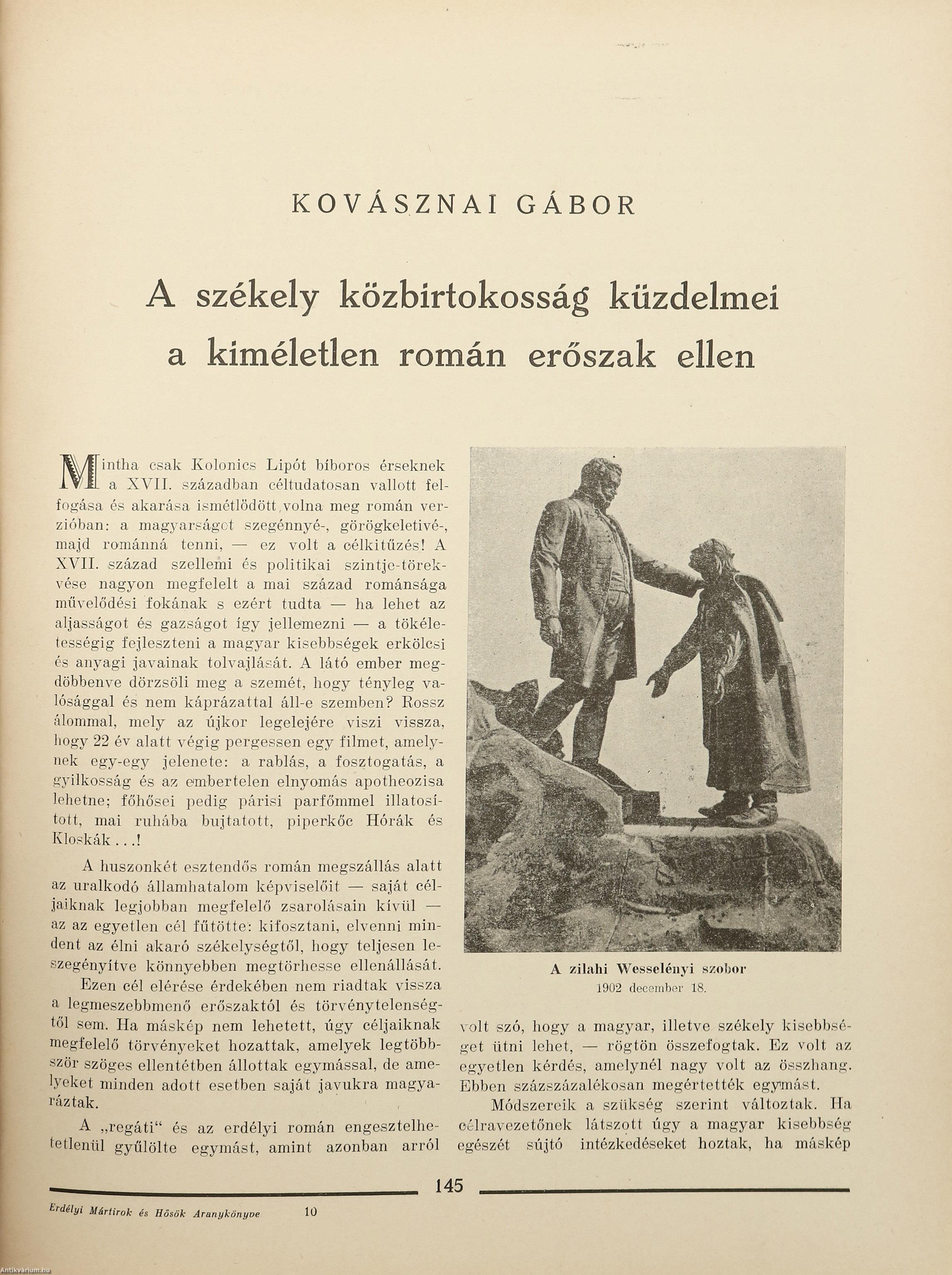 Kovásznai Gábor: A székely közbirtokosság küzdelmei a kiméletlen román erőszak ellen 145