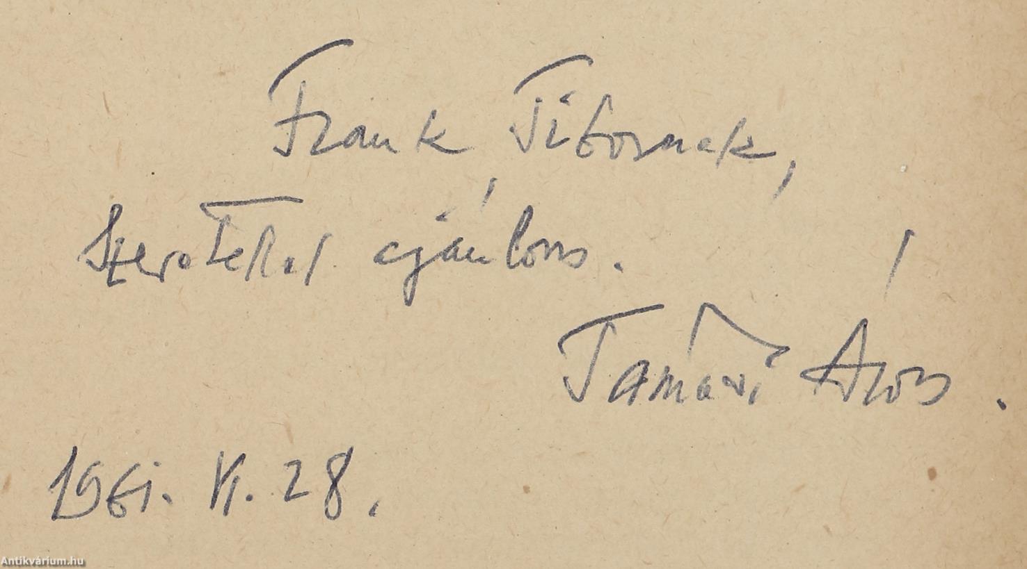 A címlapon a szerző, Tamási Áron tollal beírt, névre szóló dedikációja olvasható: "F. T.-nak, szeretettel ajánlom. Tamási Áron. 1961. VI. 28.".