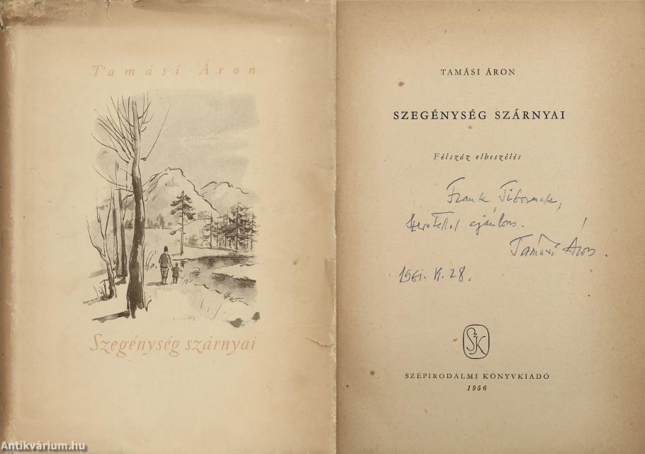 Szerző által dedikált példány. Szegénység szárnyai. Félszáz elbeszélés. Írta: Tamási Áron.