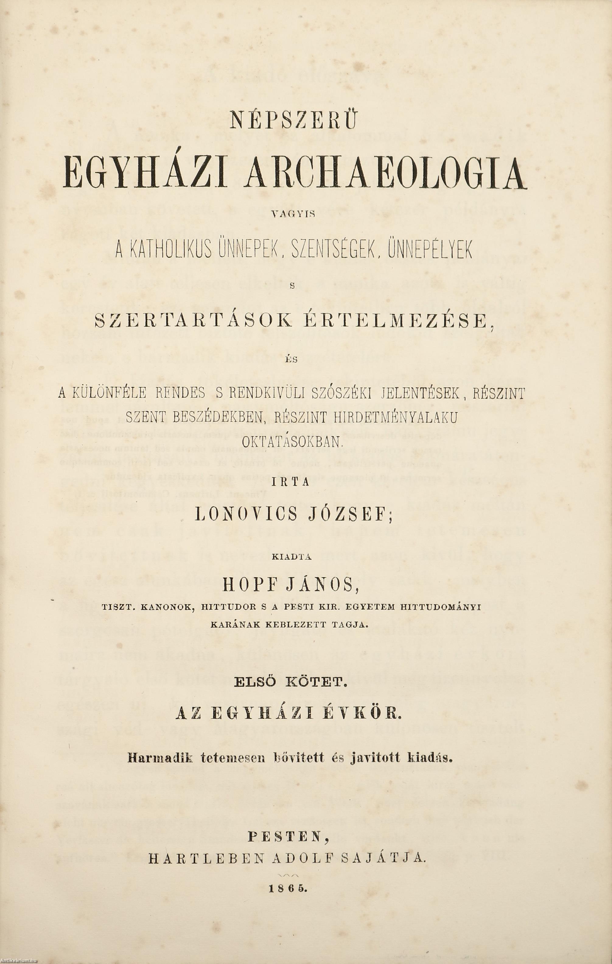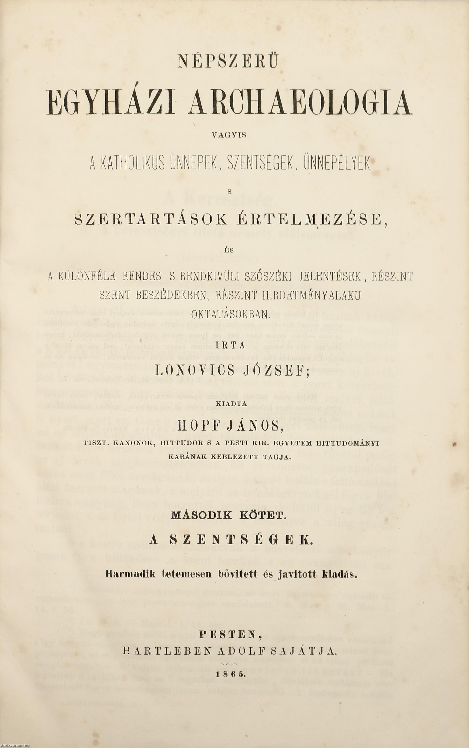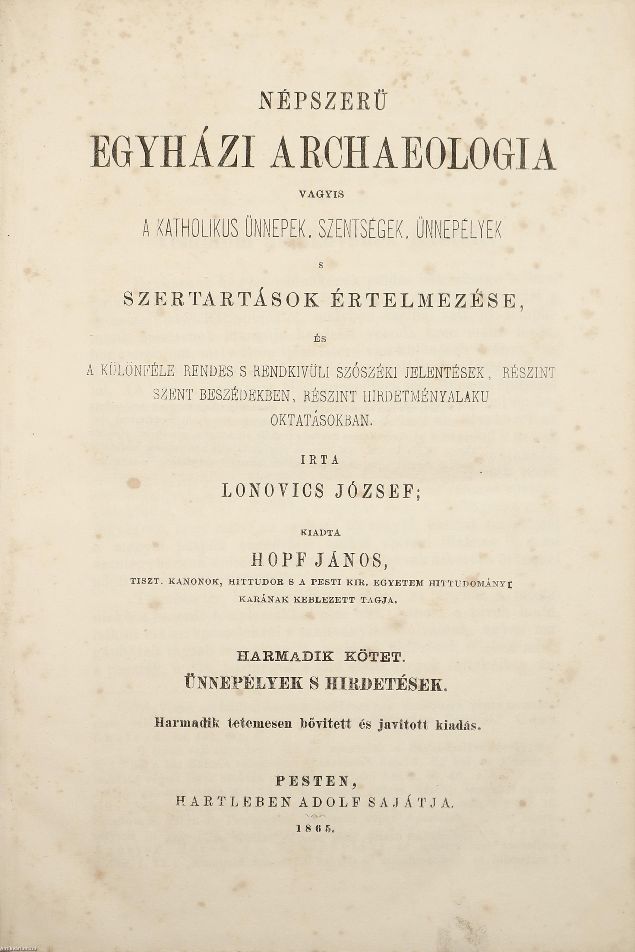 III. Uj templom püspöki fölszentelése, vagyis consecratiója 19