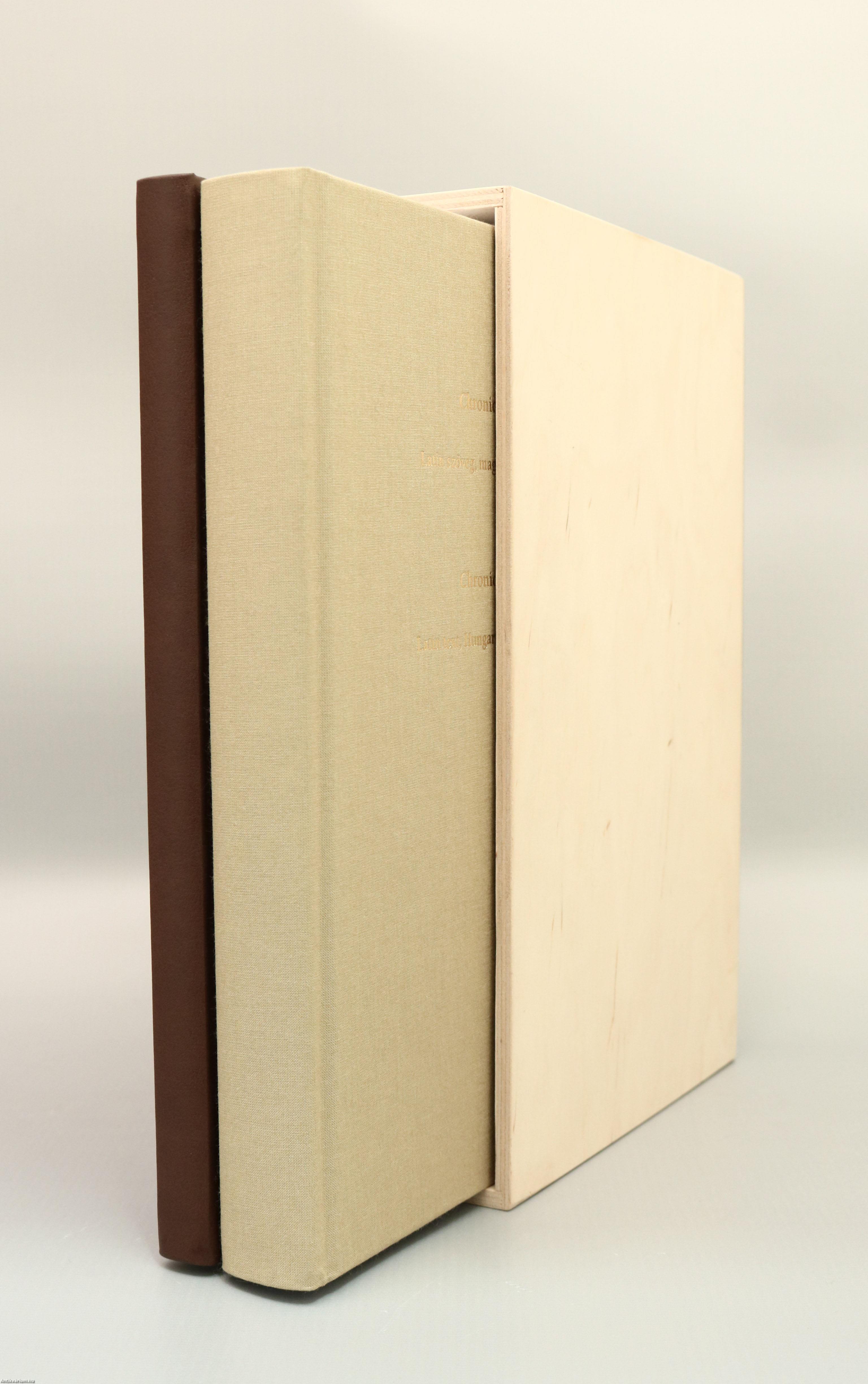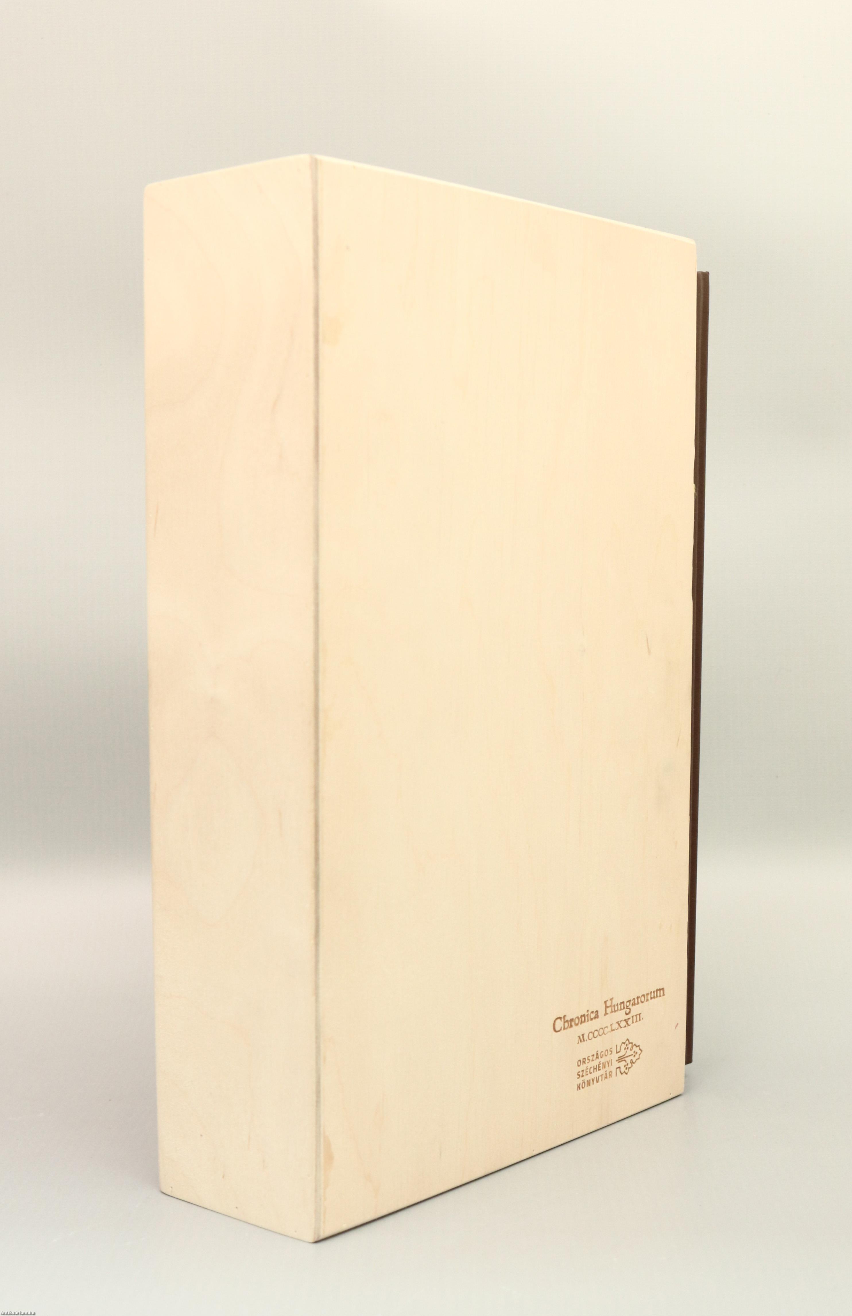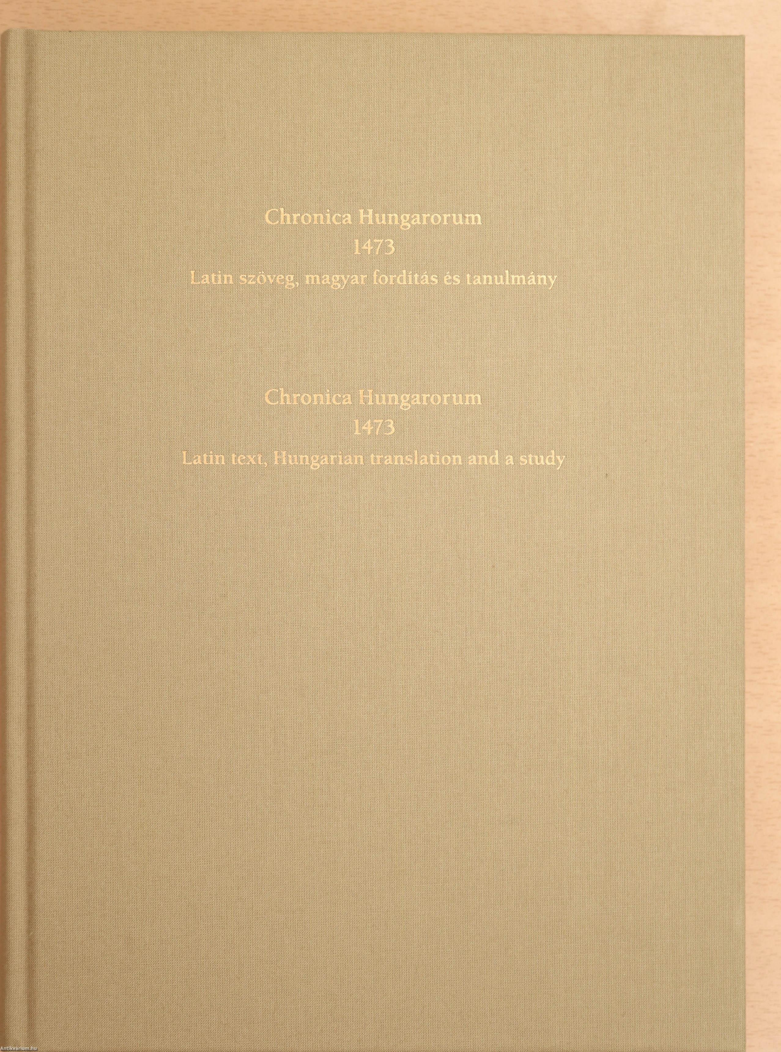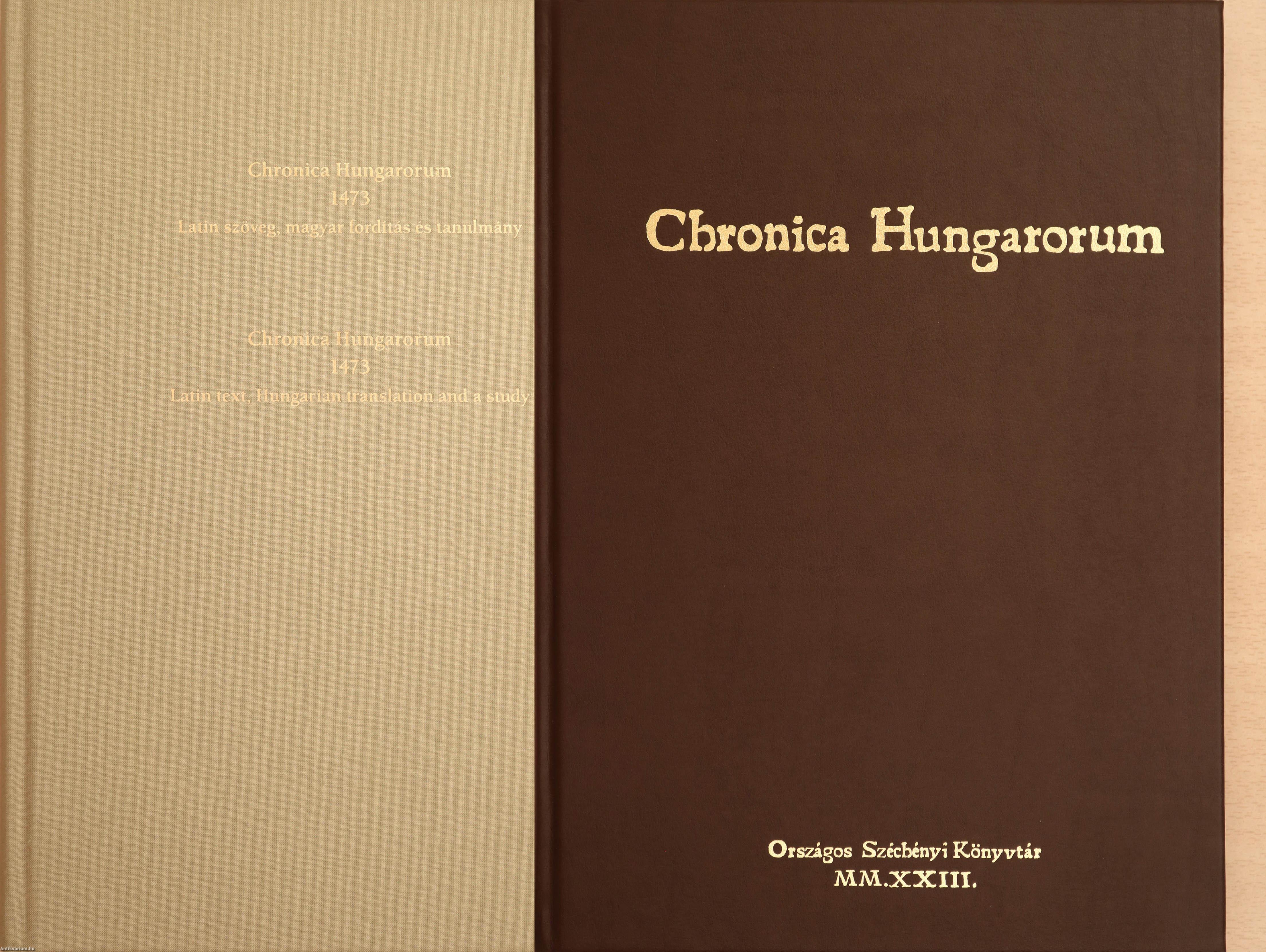 Szép, tiszta és olvasatlan, gyűjtői állapotú bibliofil példányok kiadói fa védődobozban. Sorszámozott. Ez a 366. számú példány. A kötetek az Országos Széchényi Könyvtárban őrzött Chronica Hungarorum (Inc. 328) fakszimile kiadása és annak kísérőkötete. Készült 550 példányban - ebből 200 példány díszkötésben.