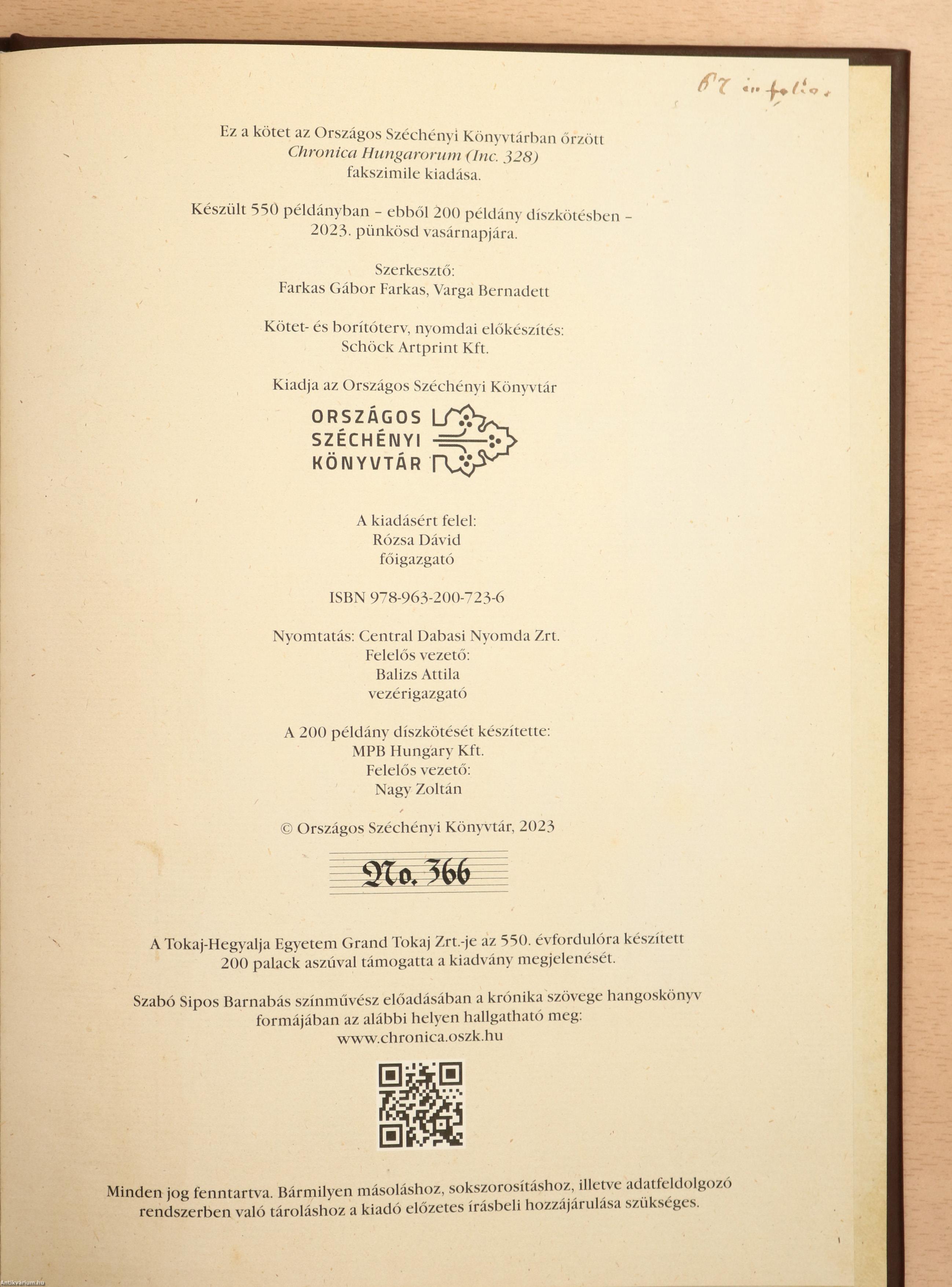 Farkas Gábor Farkas/Varga Bernadett : Chronica Hungarorum 1473 (számozott, védődobozos, bibliofil példány)