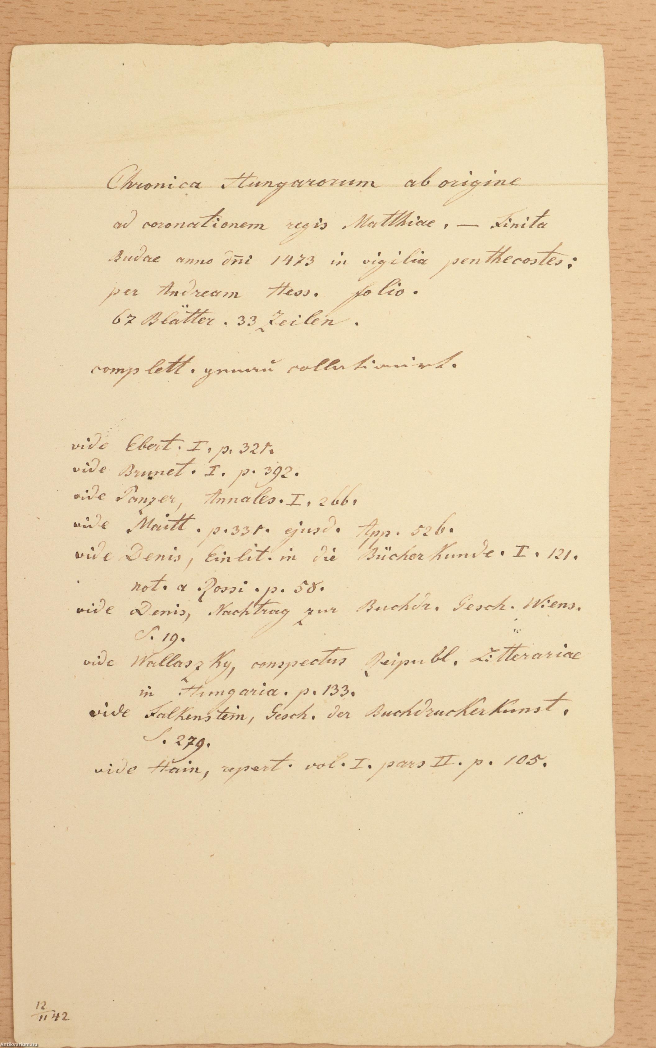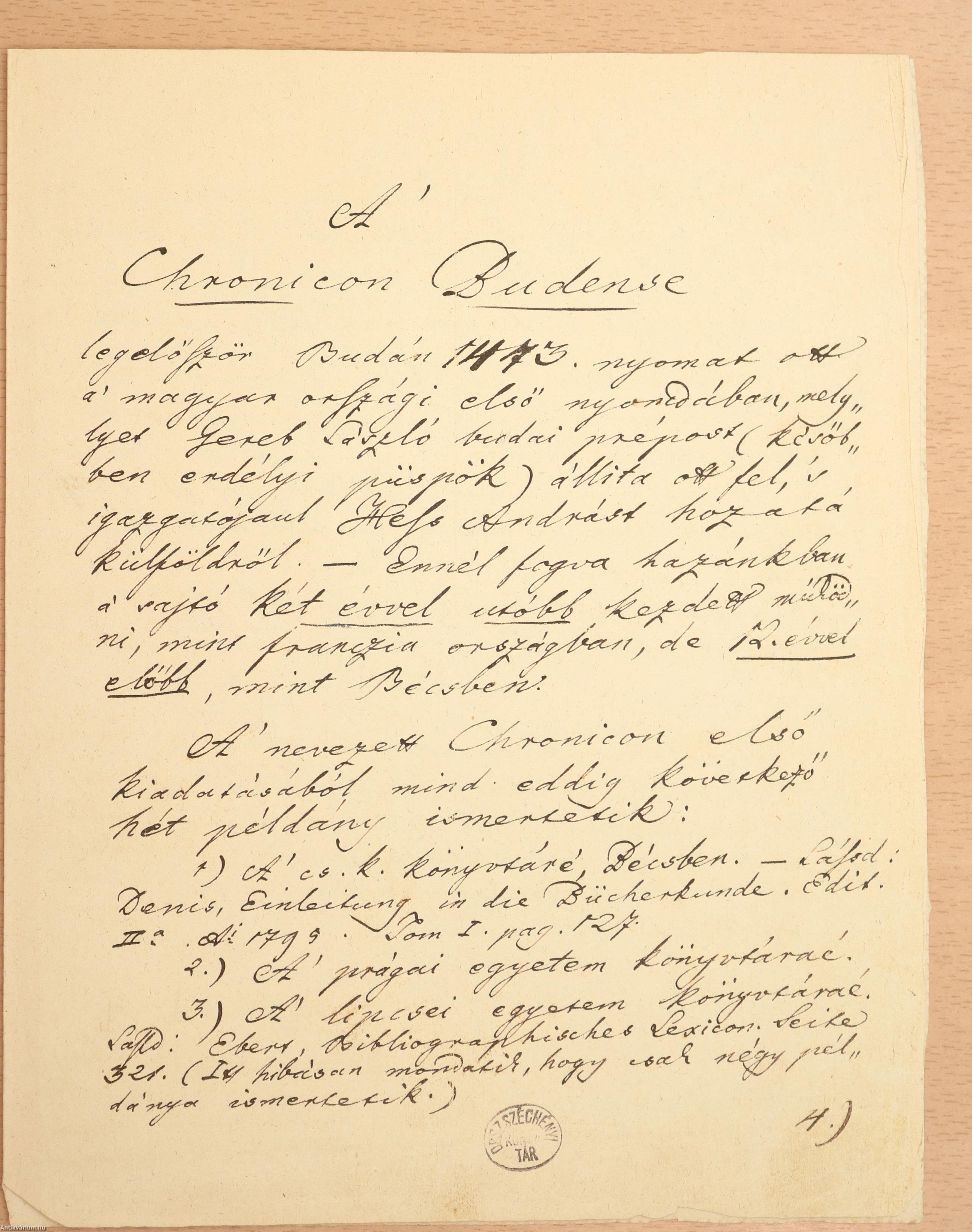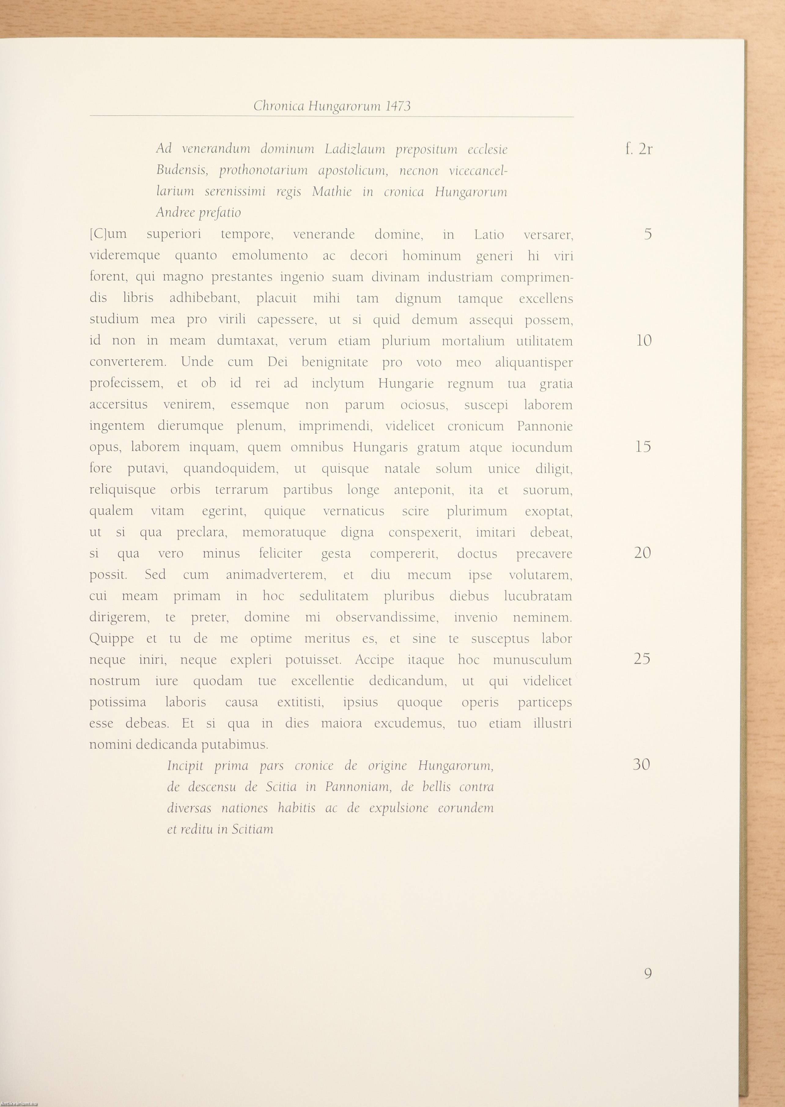 "Finita Bude anno Domini MCCCCLXXIII in vigilia penthecostes: per Andream Hess" - elkészült Budán az Úrnak 1473. évében pünkösd előestéjén, Hess András által. A Budai Krónika (továbbiakban Chronica) fenti, utolsó mondatával kezdődik a magyar nyomdászat története. A hetven levelet (ebből 133 nyomtatott lapot) tartalmazó kisfólió könyv tíz példányban maradt fenn a világon. Sok kérdés kapcsolódik a szöveghez, a könyvhöz, a nyomdászhoz és a megrendelőhöz. Némelyikre választ kaptunk az elmúlt évszázad neves régikönyv-kutatóitól, de akad elvarratlan szál az első magyar ősnyomda történetében.