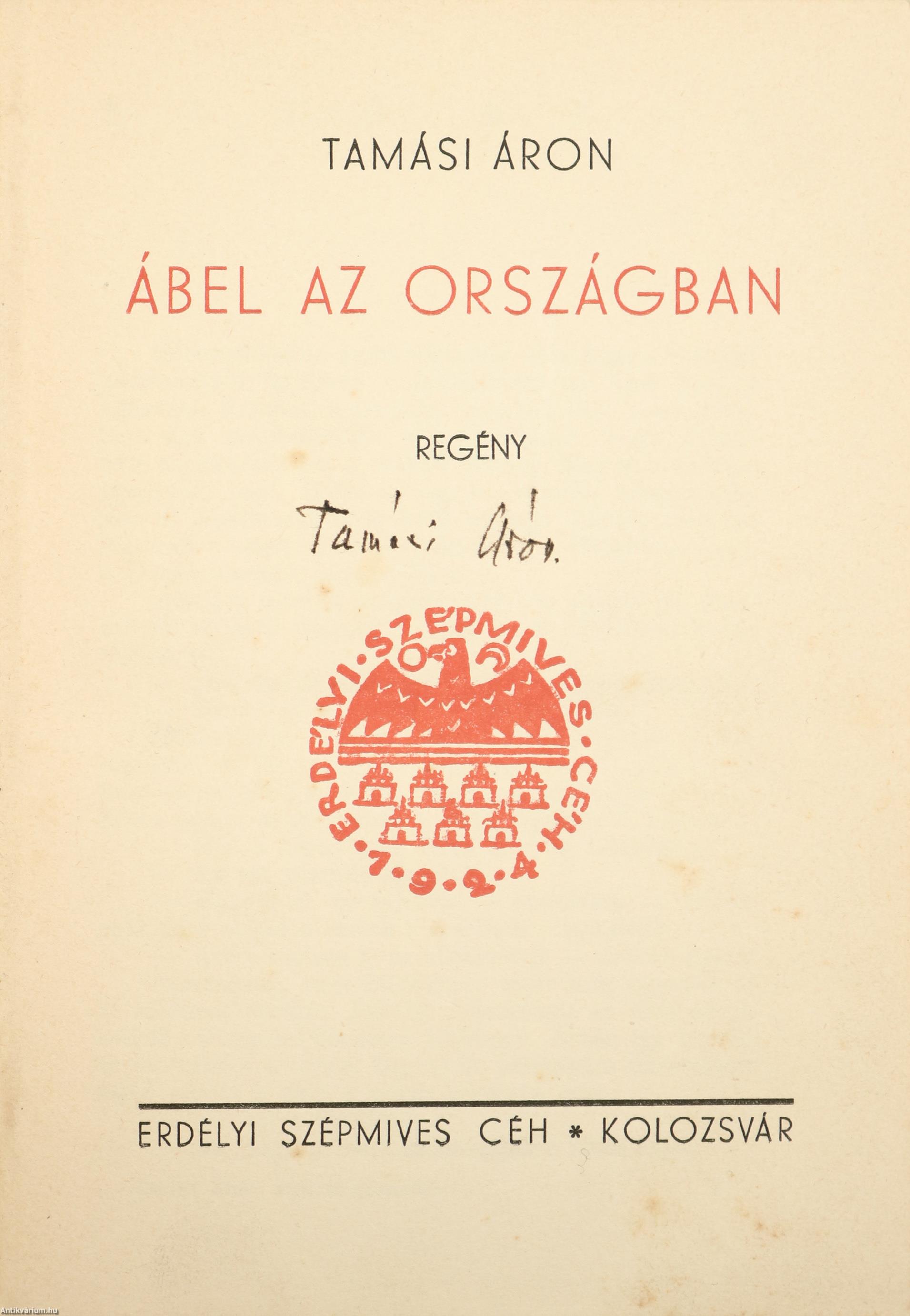 Szerző által aláírt példány. Ábel az országban. Regény. Írta: Tamási Áron.