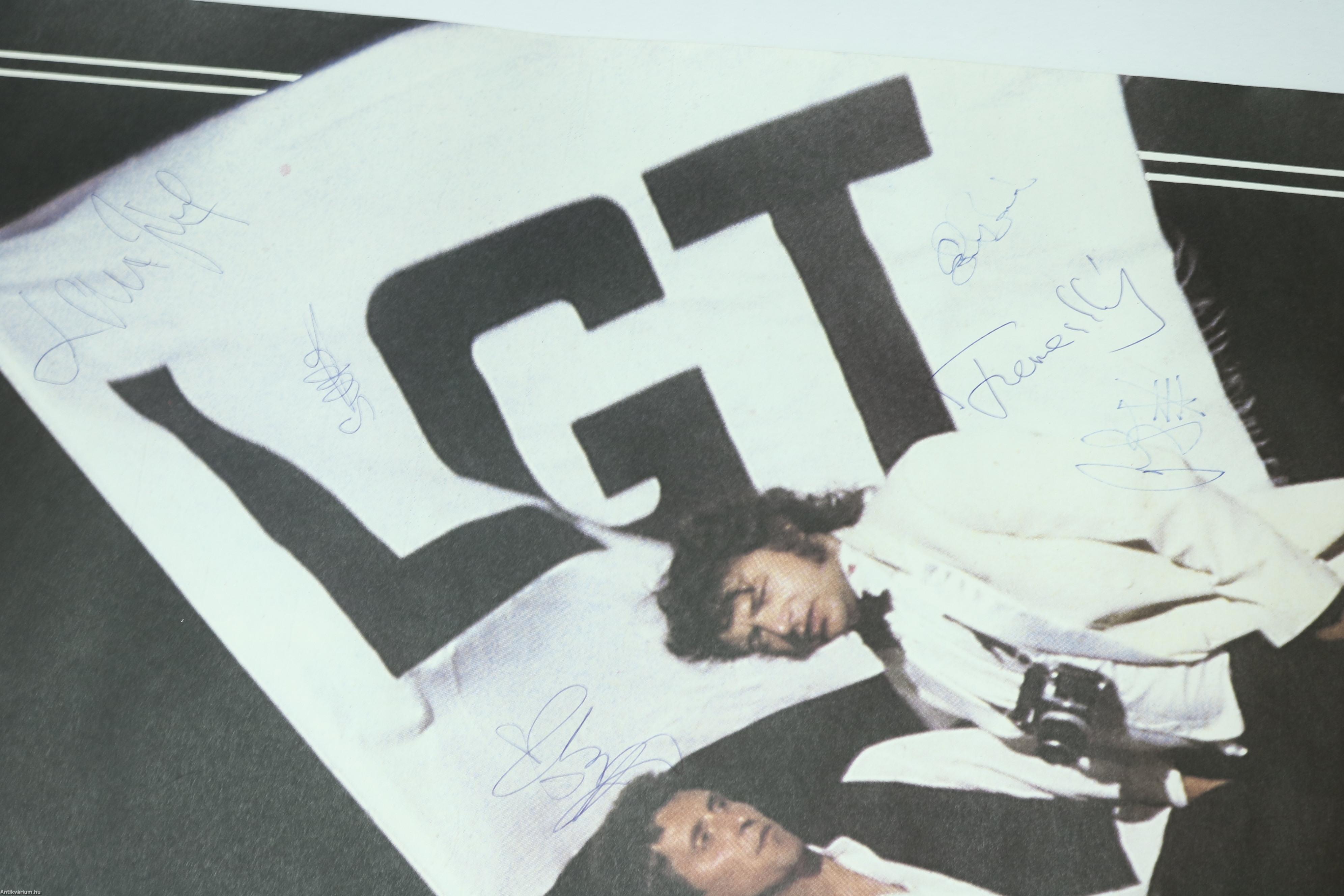 Az LGT hat tagja által aláírt példány. Locomotiv G. T. (LGT) poszter.
