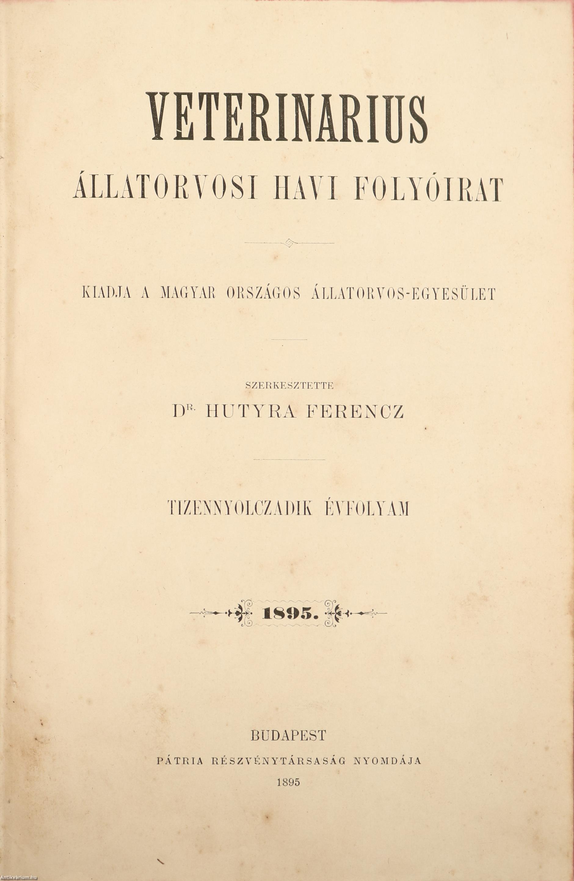 Hutyra Ferenc dr. Állategészségügyi évkönyv 89, 585