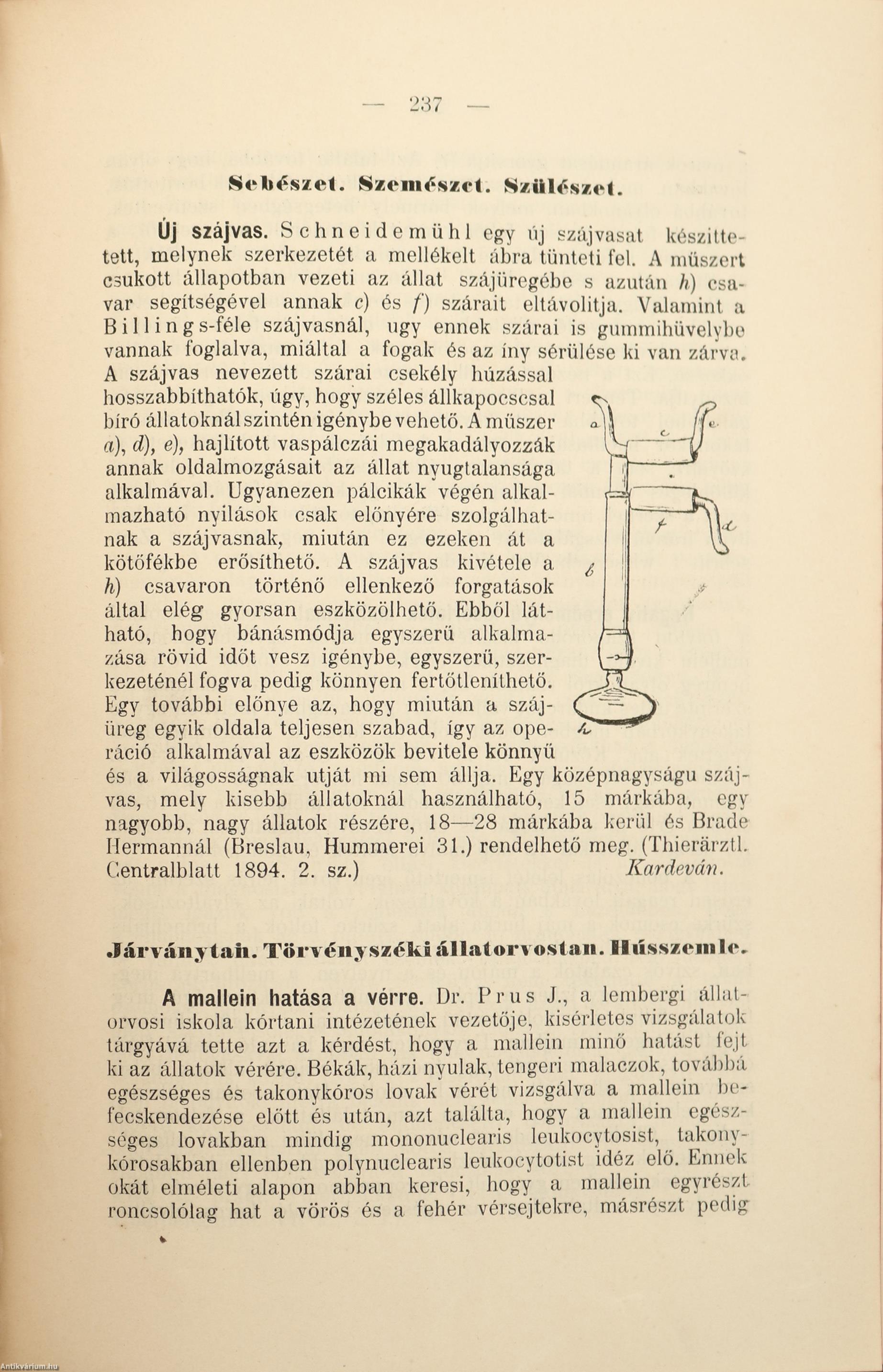 Márk Dezső. Az újabb oltási módszerek a gyakorlatban, különös tekintettel a sertésorbáncz elleni serumoltásokra 257