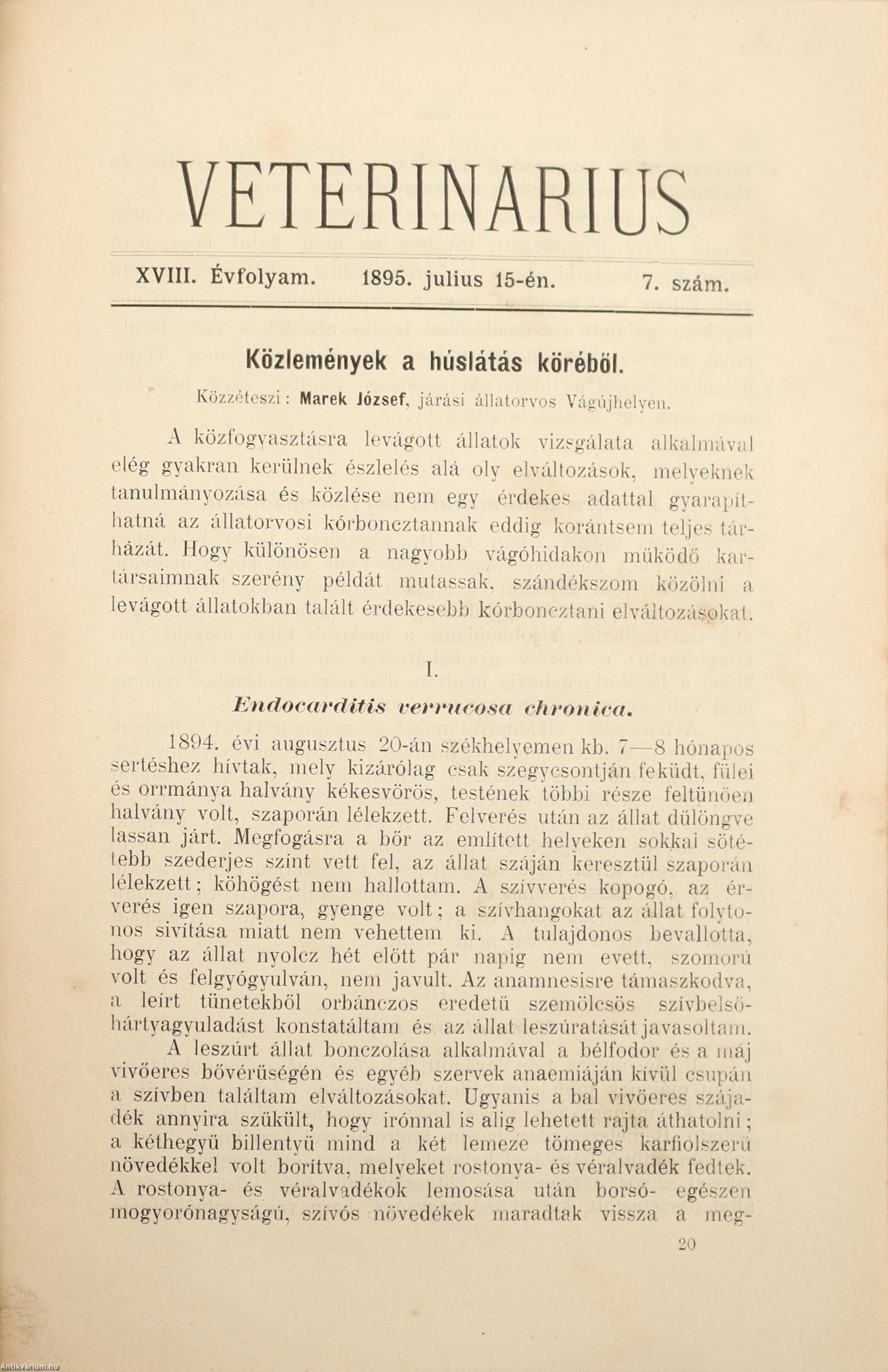 Mihályi Imre. Fibroma multiplex által okozott idült emésztetlenség egy esete szarvasmarhánál 59
