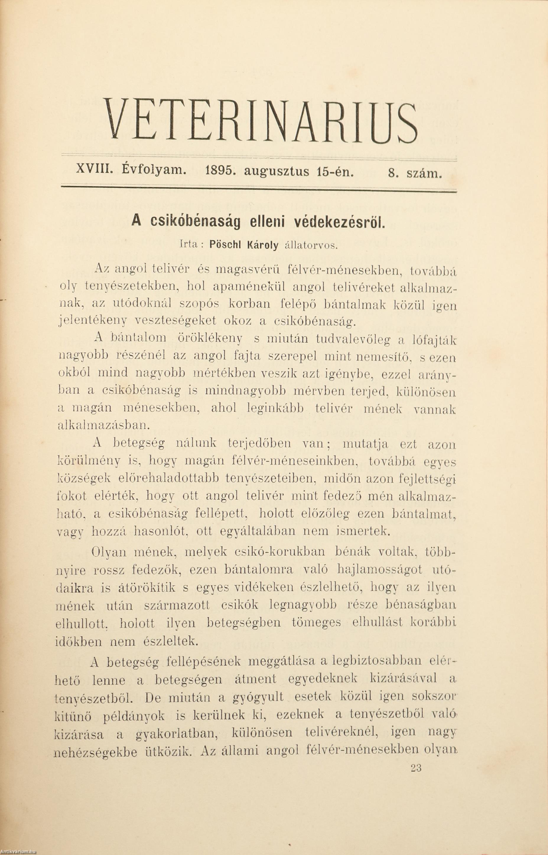 A csikóbénaság elleni A védekezésröl 353