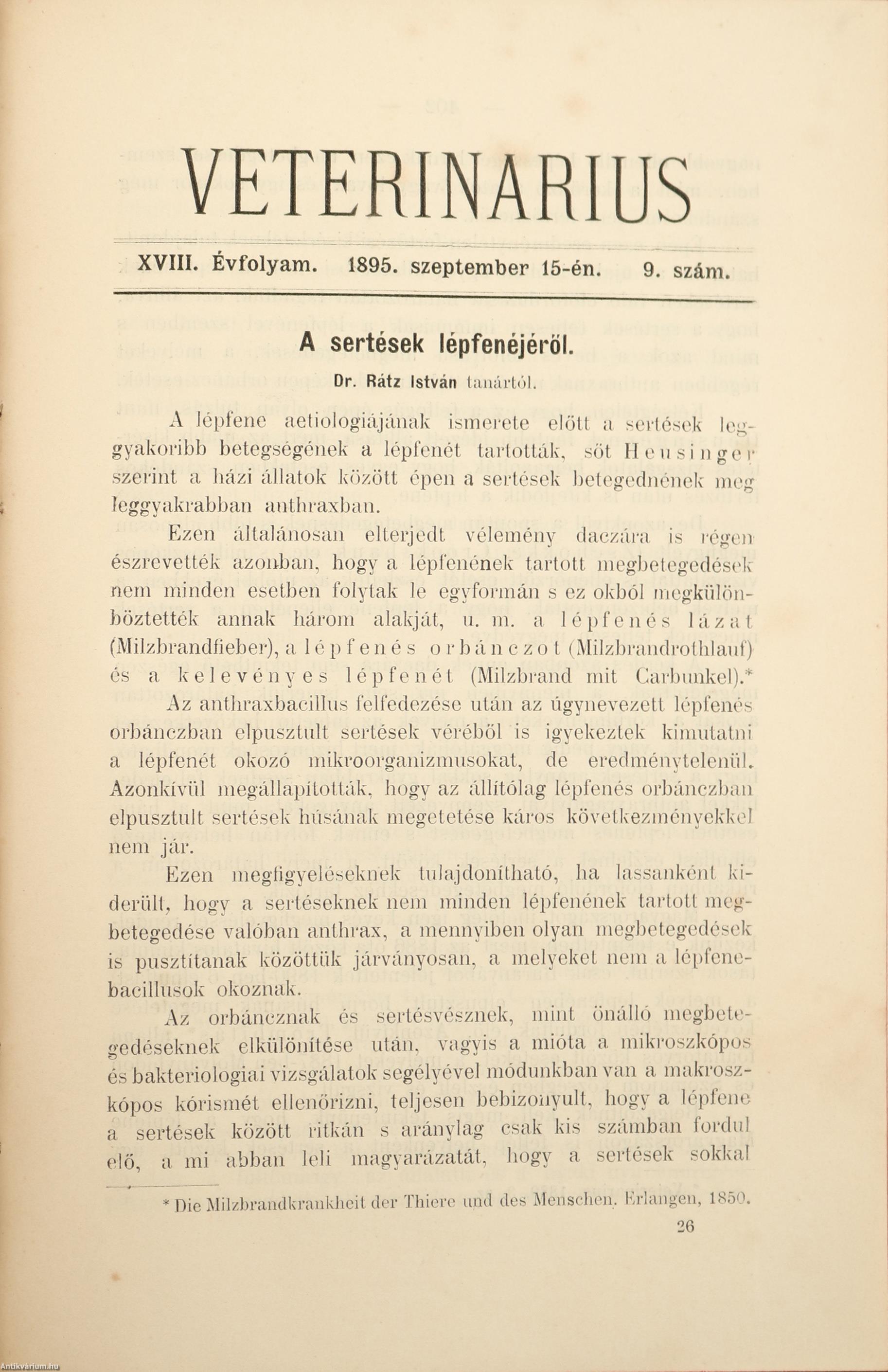 A sertések lépfenéjéröl 401