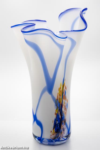 Murano Opalin Fazzoletto fehér - kék üveg szalvéta váza 20. század második fele 39 cm