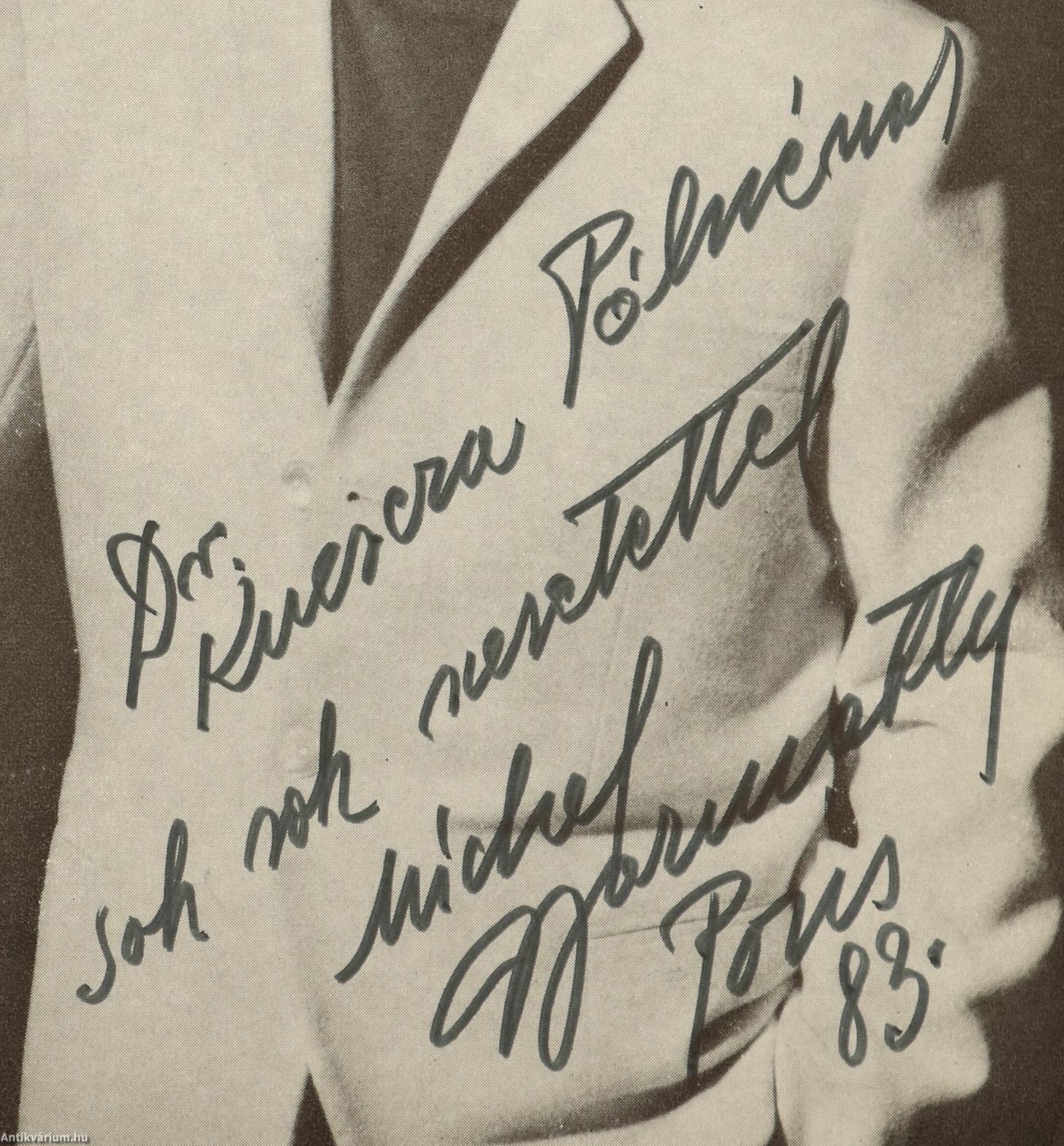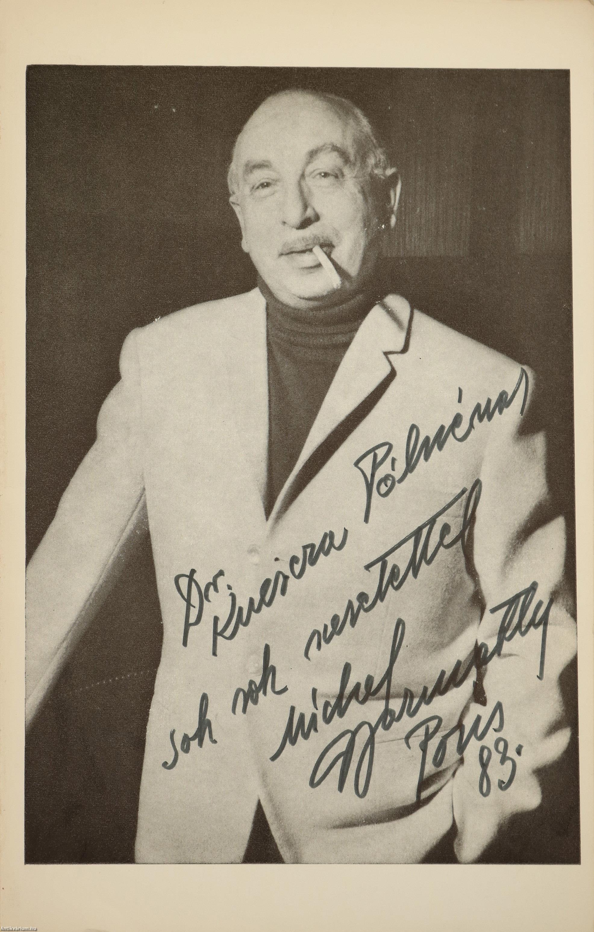 A szerzőt ábrázoló, fekete-fehér fényképen a szerző, Michel Gyarmathy filctollal beírt, névre szóló dedikációja olvasható: "Dr. K. P.-nénak sok sok szeretettel Michael Gyarmathy Paris, 83.".