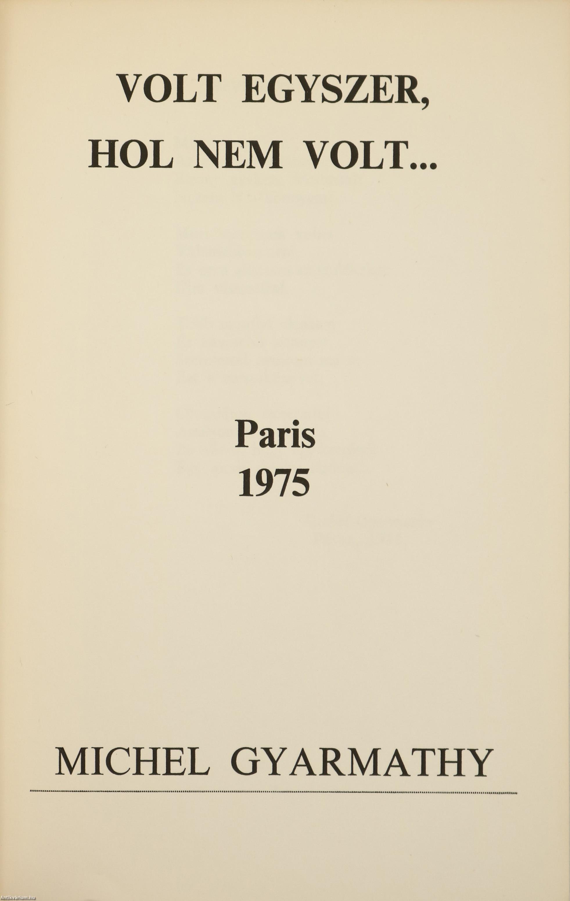 Szerző által dedikált példány. Első, emigrációs kiadás. Volt egyszer, hol nem volt... Versek. Írta: Michel Gyarmathy.