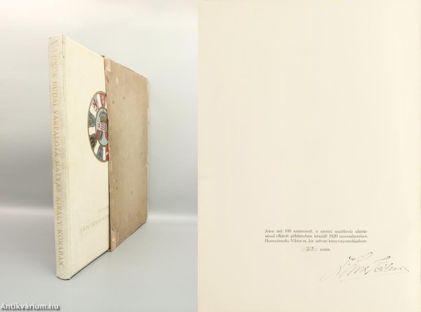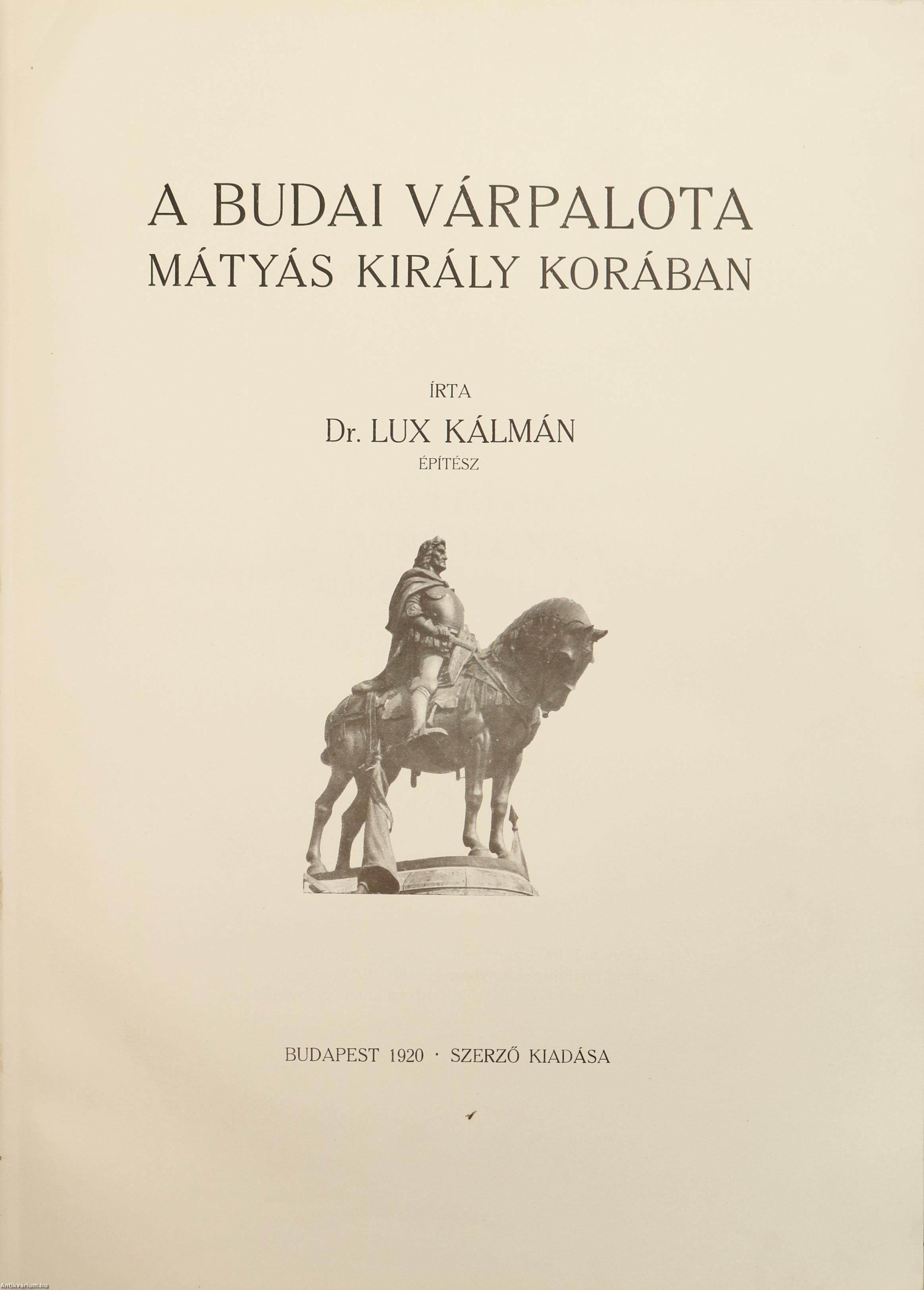 Szerző által aláírt, számozott, bibliofil példány. Első kiadás. A budai várpalota Mátyás király korában. Írta: Dr. Lux Kálmán.