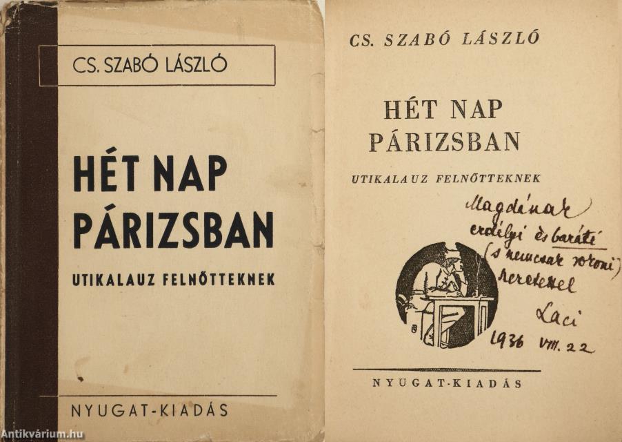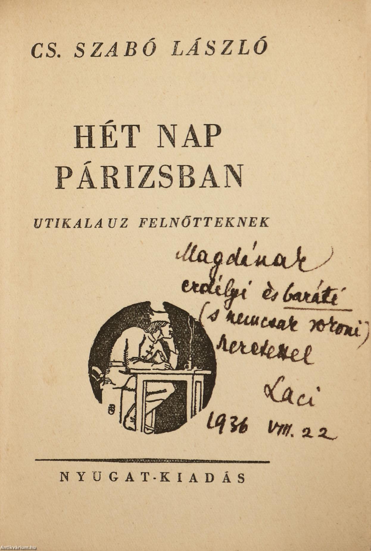 Szerző által dedikált példány. Hét nap Párizsban. Utikalauz felnőtteknek. Írta: Cs. Szabó László.