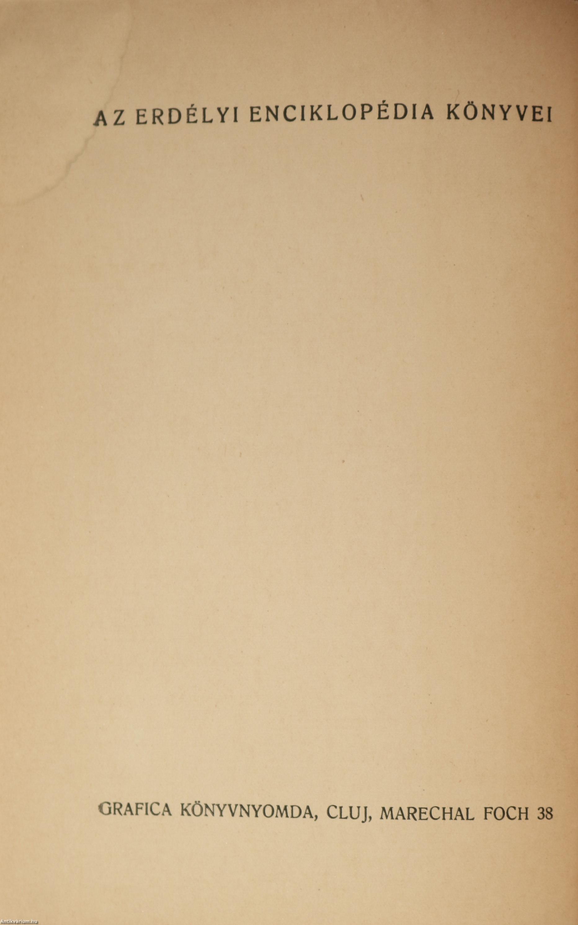 Kolozsvár, 1940, Erdélyi Enciklopédia (Grafica Könyvnyomda, Cluj), 133 p. + [2] p. + [2] t., ill. + 1 térk. (kihajtható)