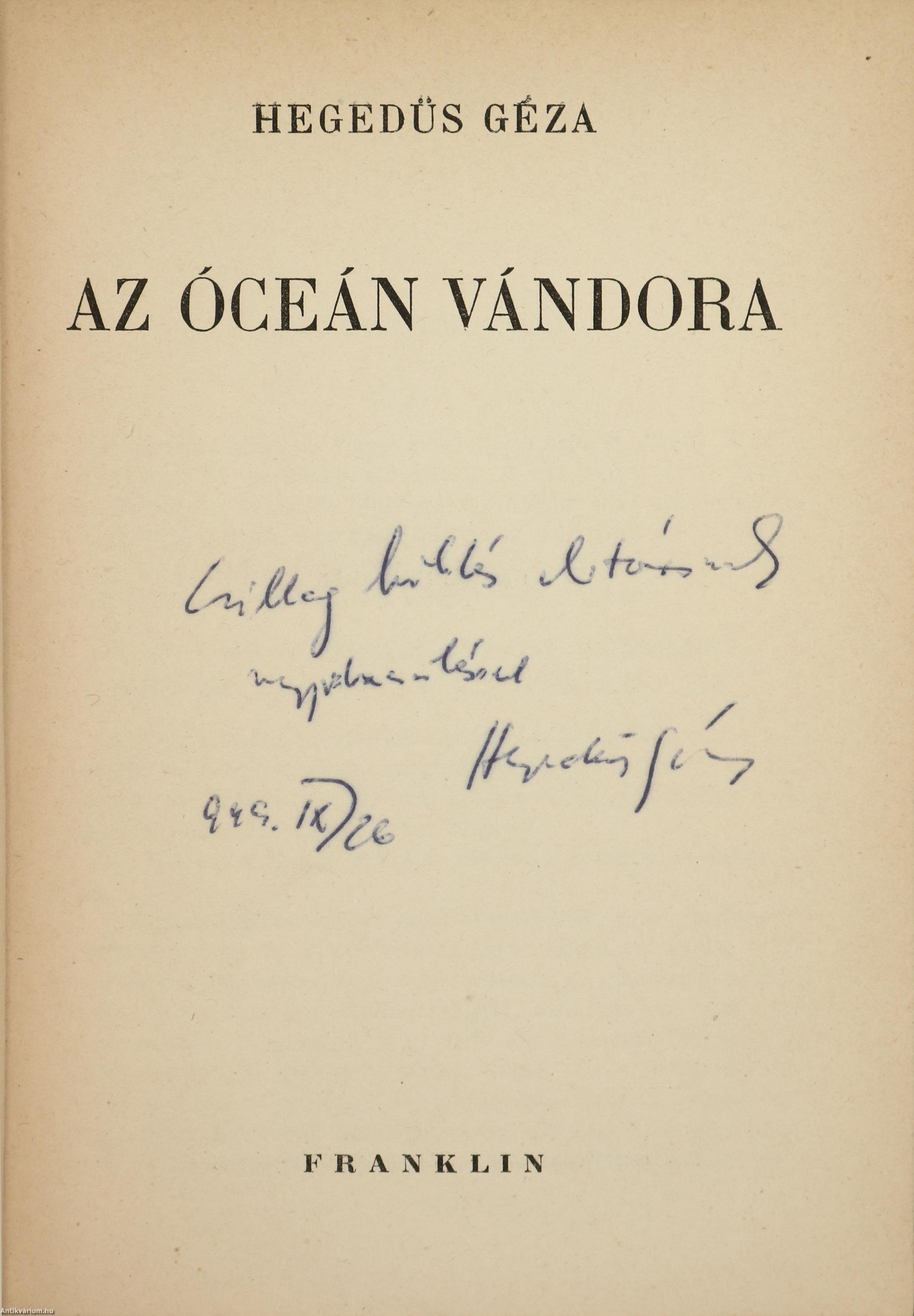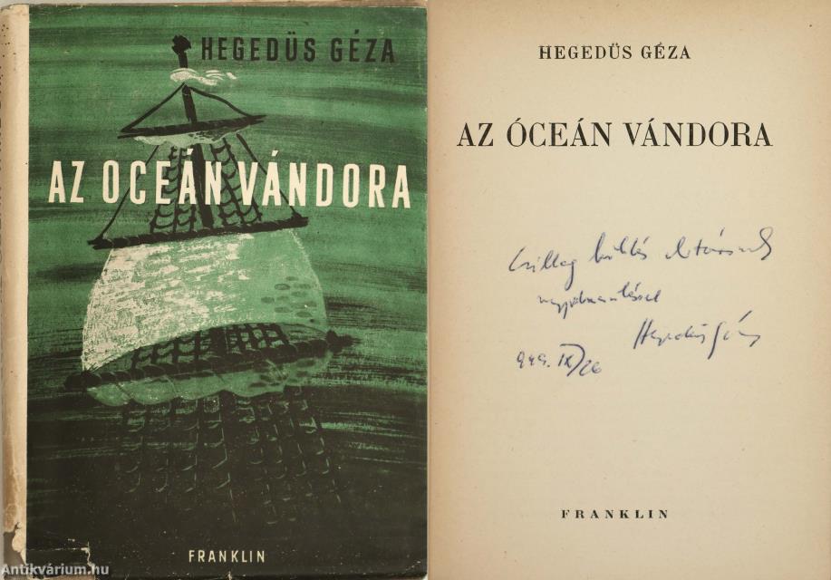 Szerző által dedikált példány. Az óceán vándora. Írta: Hegedűs Géza.